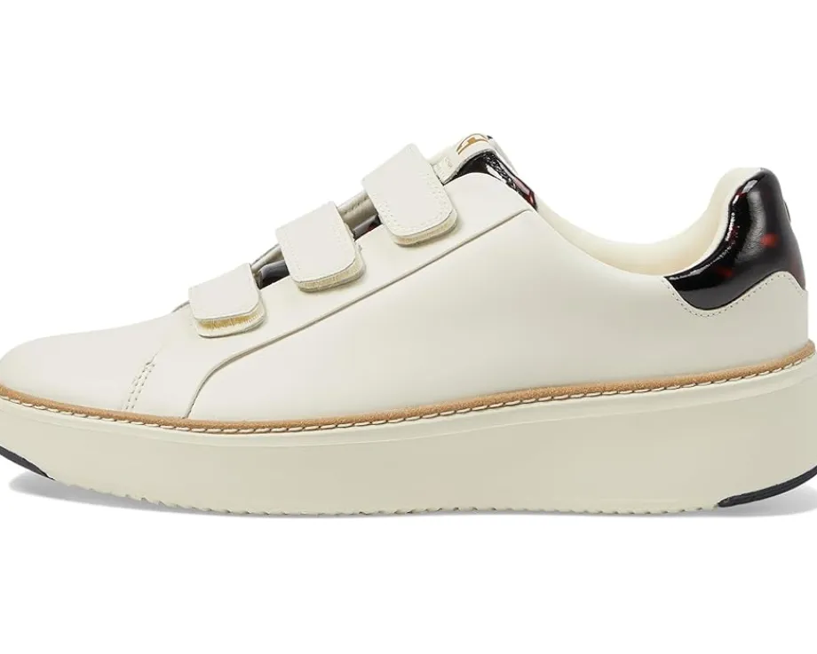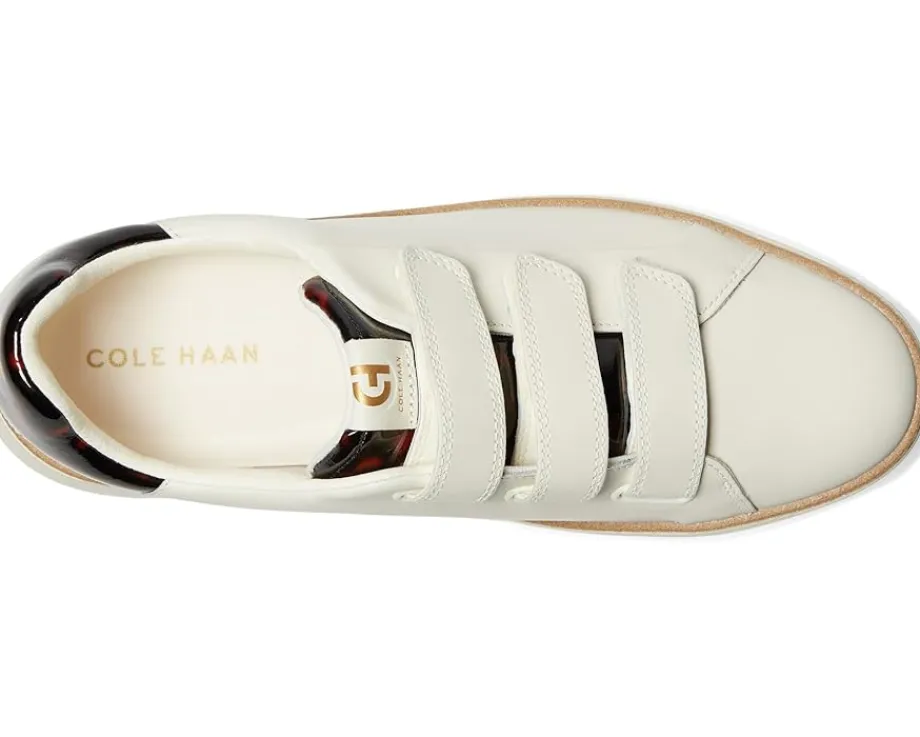 - Experience the ultimate in comfort and style wearing the Cole Haan® GrandPro Topspin Triple Strap Sneakers. Featuring premium leather upper and soft textile lining, these sneakers exude sophistication while providing a snug fit. The EVA insole and molded heel counter deliver superior comfort, while the medial ventilation ensures breathability throughout the day. With traditional Sacchetto construction and a removable footbed, you can easily adjust the fit for optimal comfort. The single-density IP-injected molded EVA midsole and rubber welt offer durable cushioning, making these sneakers a reliable choice for any occasion.