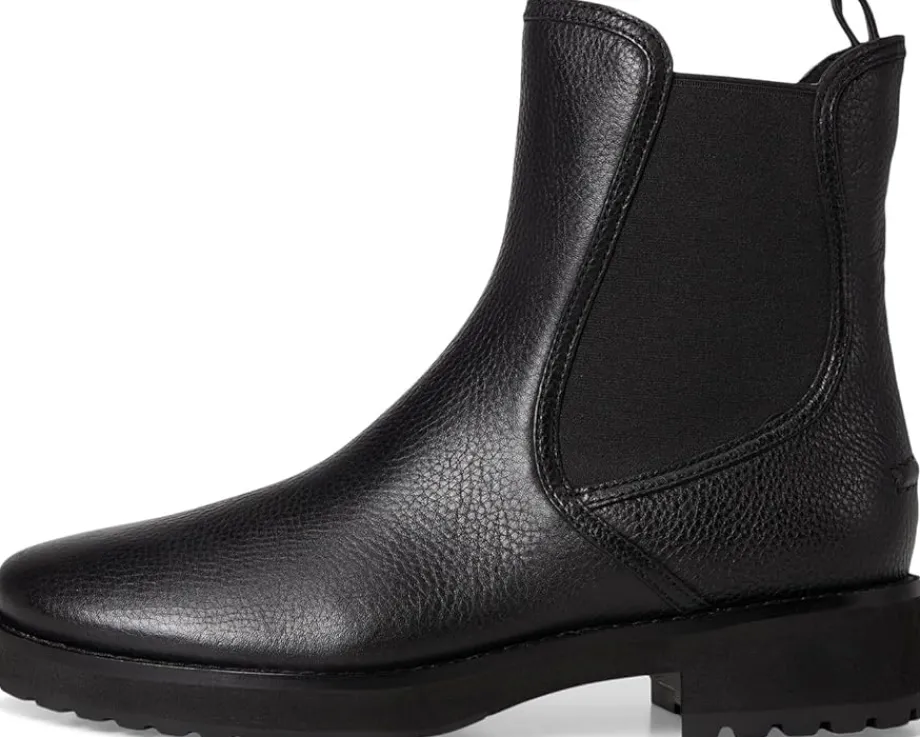 - The Cole Haan® Lyndon Waterproof Chelsea Booties present a classic silhouette with streamlined form and function for every occasion. Crafted in quality leather uppers with a waterproof coating and systematic layers of proprietary cushioning compounds, these softly pad each step. The full rubber outsole is for added grip and traction, while the block heel detail elevates the height. Plus, the ankle pull tab allows easy donning & doffing.