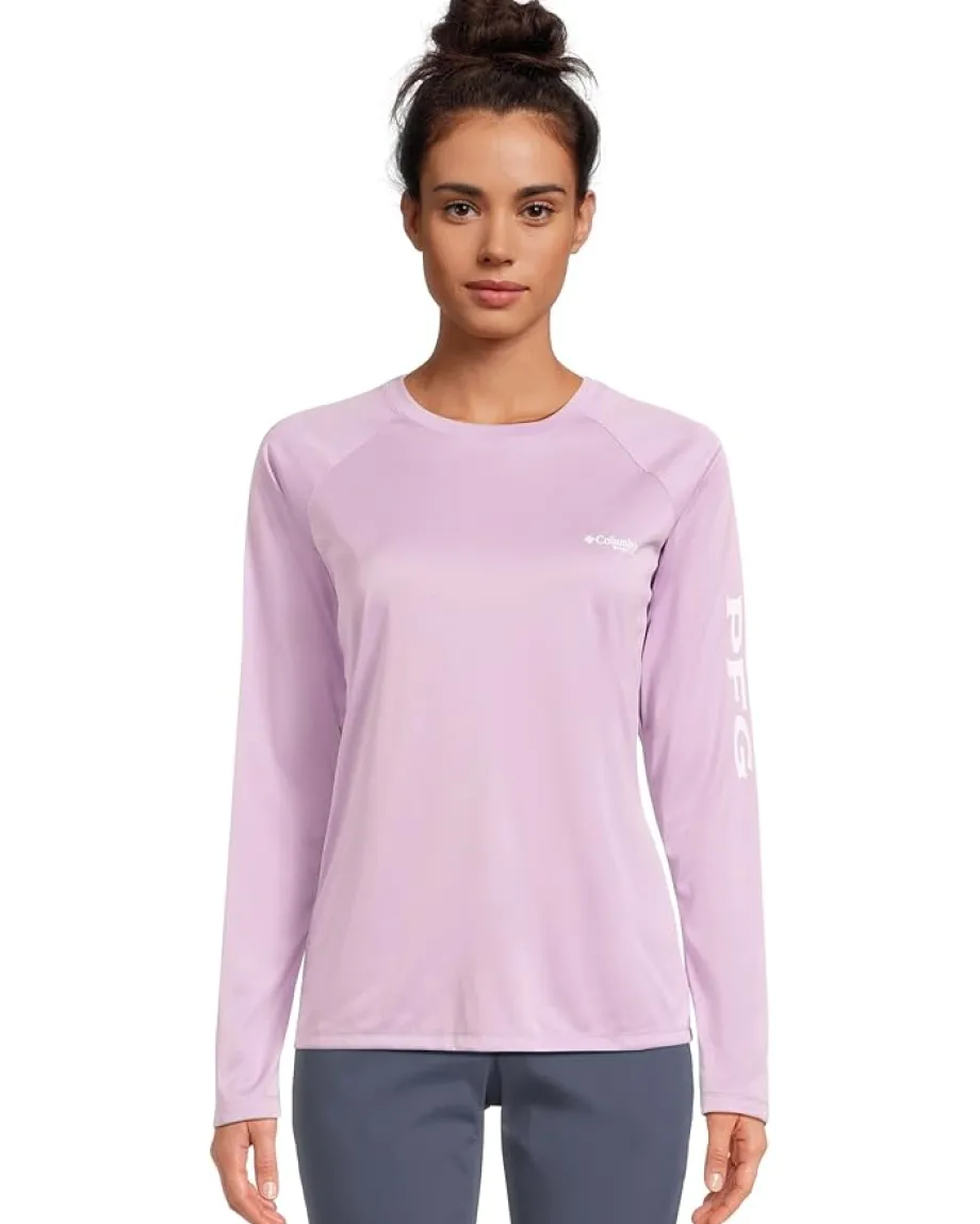 - This fishing shirt is one to add to your wardrobe the Columbia® Tidal Tee™ Heather Long Sleeve features a classic crew neck, long sleeve tee with branding along the arm.