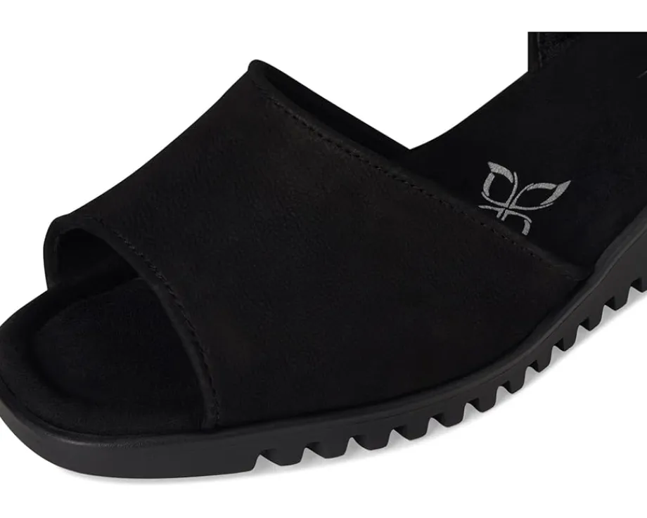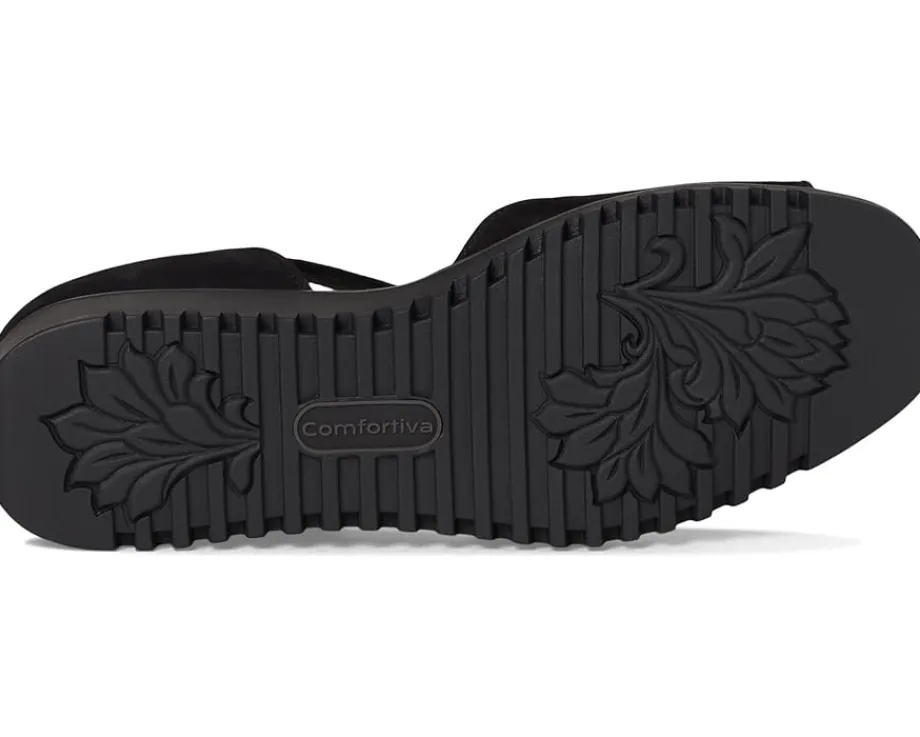 - The Comfortiva® Daniella sandals are two-piece sandals with lightweight wedge heels that work for different occasions. These heeled sandals are made of a foam insole, microsuede memory foam sock lining, and faux suede lining. The leather upper features a hook-and-loop strap for a secure fit.
