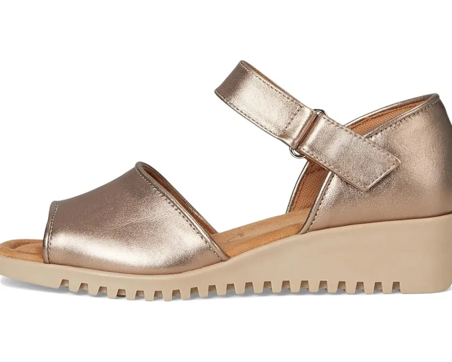 - The Comfortiva® Daniella sandals are two-piece sandals with lightweight wedge heels that work for different occasions. These heeled sandals are made of a foam insole, microsuede memory foam sock lining, and faux suede lining. The leather upper features a hook-and-loop strap for a secure fit.
