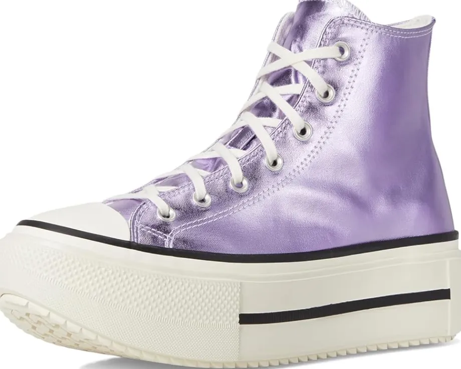 - Catch light (and looks) with every step in these extra-tall Converse® Chuck Taylor All Star Lift Double Stack Metallic sneakers. Their metallic canvas upper for an elevated look and feel, while the OrthoLite cushioning helps provide optimal comfort. These platform shoes are made of an EVA insole and cotton lining. The shiny, metallic finish brings a party-ready vibe. Styled with an iconic Chuck Taylor ankle patch and All Star license plate, these lace-up sneakers feature a double-stacked platform that ups the height.