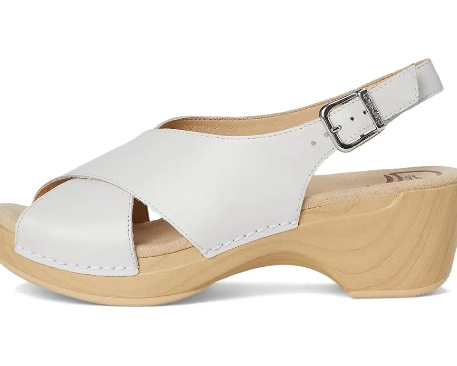 - Get wrapped up in the unique style of Dansko® Sloane, a thoughtfully constructed sandal that’s easy to dress up or down. The crisscross strap with buckle closure at the sling ensures a secure and adjustable fit. The upper is made from full grain leathers and suede treated with 3M Scotchgard, providing excellent stain resistance. The socklining features Dri-Lex treatment with microbe resisting properties for effective moisture management and odor control, keeping your feet fresh all day. Also, the shock-absorbing foam footbed offers superior comfort and support.