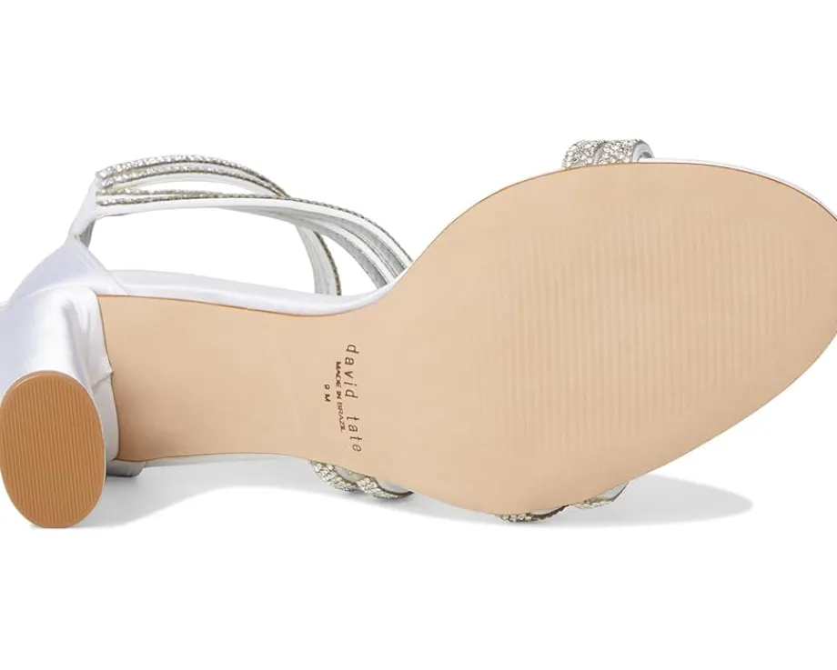 - Strut with marvelous flair wearing the shimmery David Tate® Bride Sandals. The block heel footwear features sparkling rhinestones on the upper with zippered closure on the backstrap.