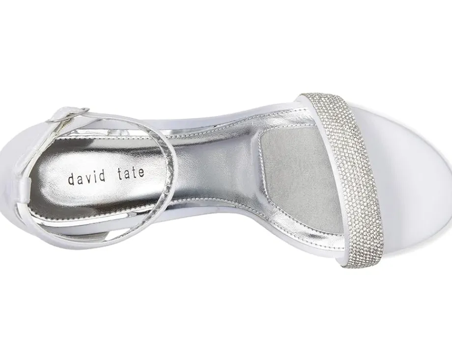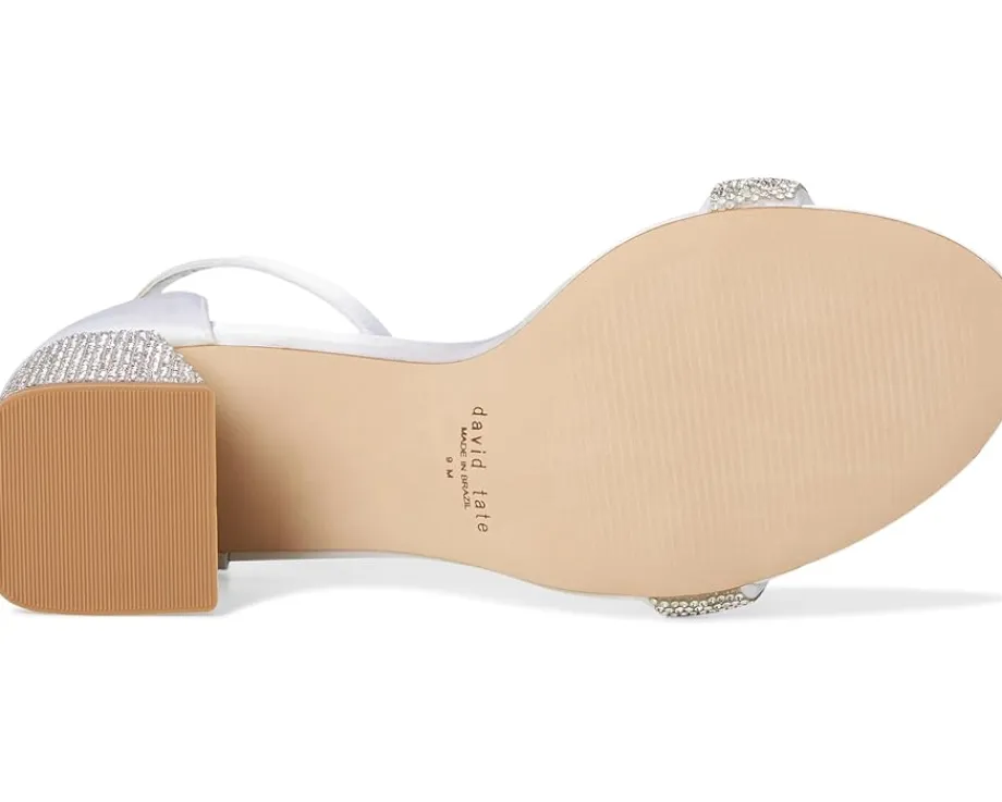 - A gorgeous and glamorous pick for your evening parties, the David Tate® Icon Heels showcase a premium quality satin upper perfectly teamed with shimmery rhinestone embellishments on the toe strap. Equipped with a feminine buckle strap closure at the ankle, the shoes look more stylish with the high quality sockliner made with satin, suede, and soft leather and surrounded by a metallic frame. The rhinestone-covered block heel lifts your look with some added charm.