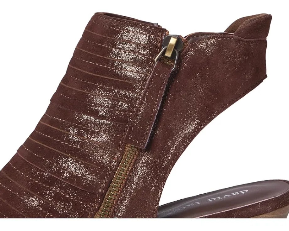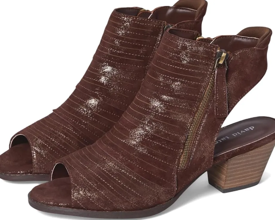 - Treat yourself to the David® Tate Sideview. These ankle boots feature a luxurious suede upper, complemented by a nylon lining for all-day comfort. The dual side zippers not only add a touch of edgy flair but also ensure easy on-and-off wear. Walk confidently on durable rubber soles that offer superior traction and stability, while the cuban heel provides just the right amount of lift.