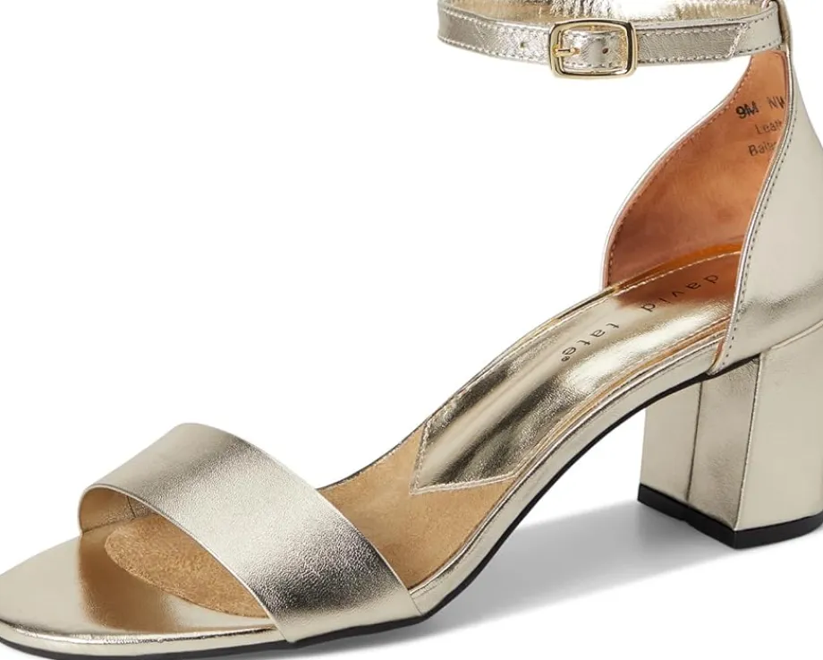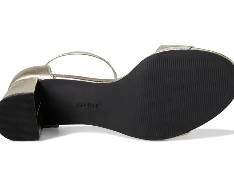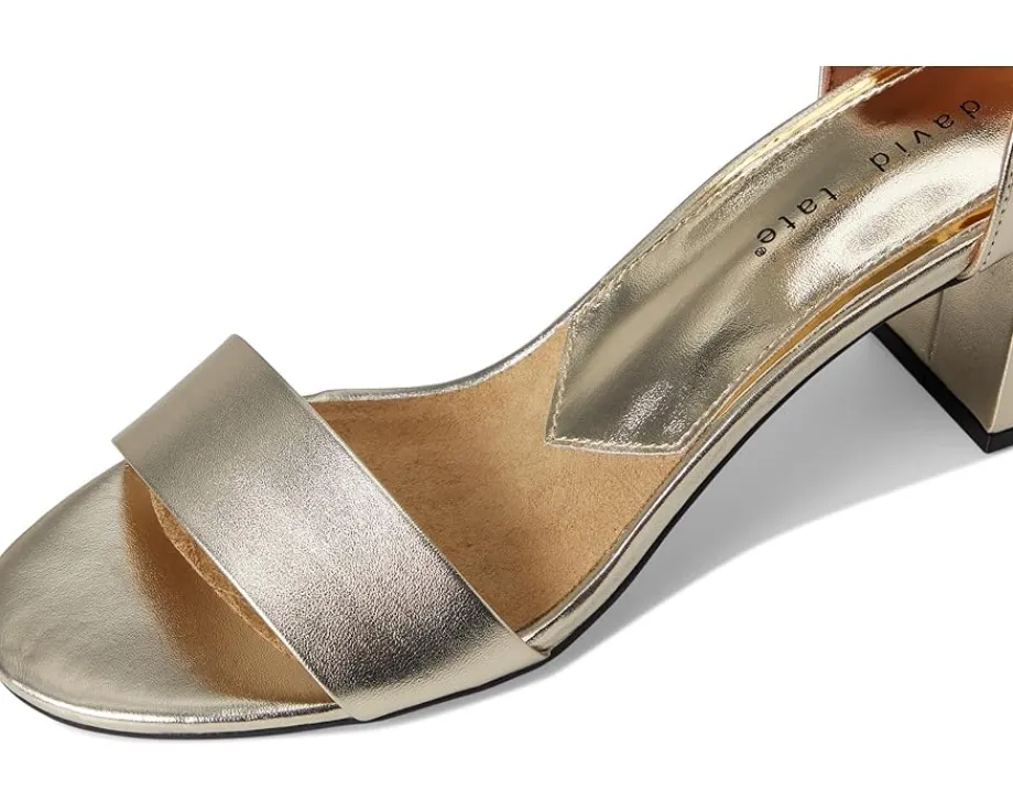 - The David Tate® timeless: A chic companion that effortlessly transitions from day to night, combining style, comfort, and unparalleled versatility. Crafted with a sleek leather upper and durable rubber outsole, this shoe is designed to elevate any outfit while providing all-day wearability. The faux leather insole and nylon lining offer a soft, cushioned feel, ensuring your feet stay comfortable with each step. Featuring easy-on, easy-off straps and a padded insole, these heeled sandals provide the perfect balance of fashion and function.