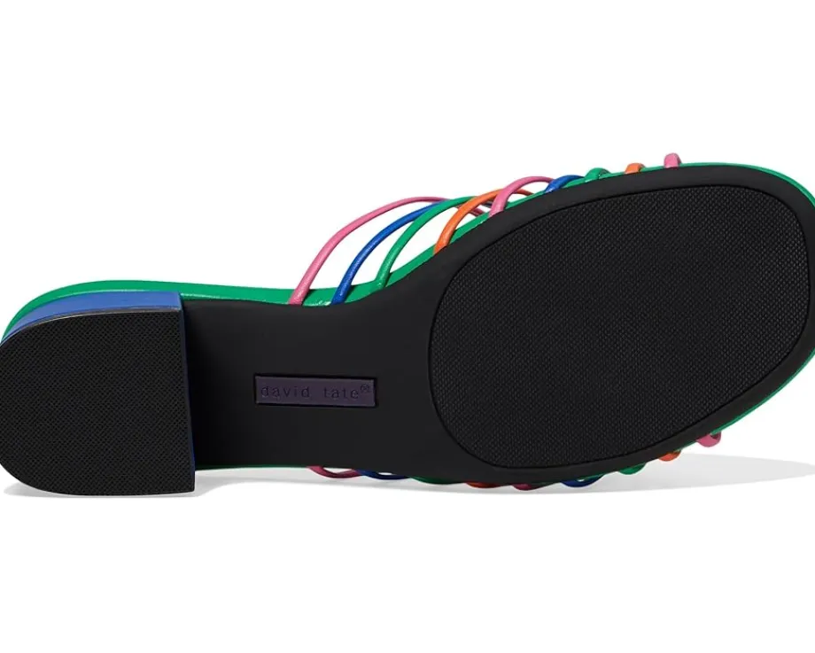 - Sunshine ready in seconds. David Tate® Excellent: Enhance your look with trendy spaghetti straps, luxurious leather upper, lining, and a chic leather-covered heel. Experience comfort like never before with foam-padded insoles and a secure suede forepart. Walk confidently with a textured rubber outsole that grips any surface.
