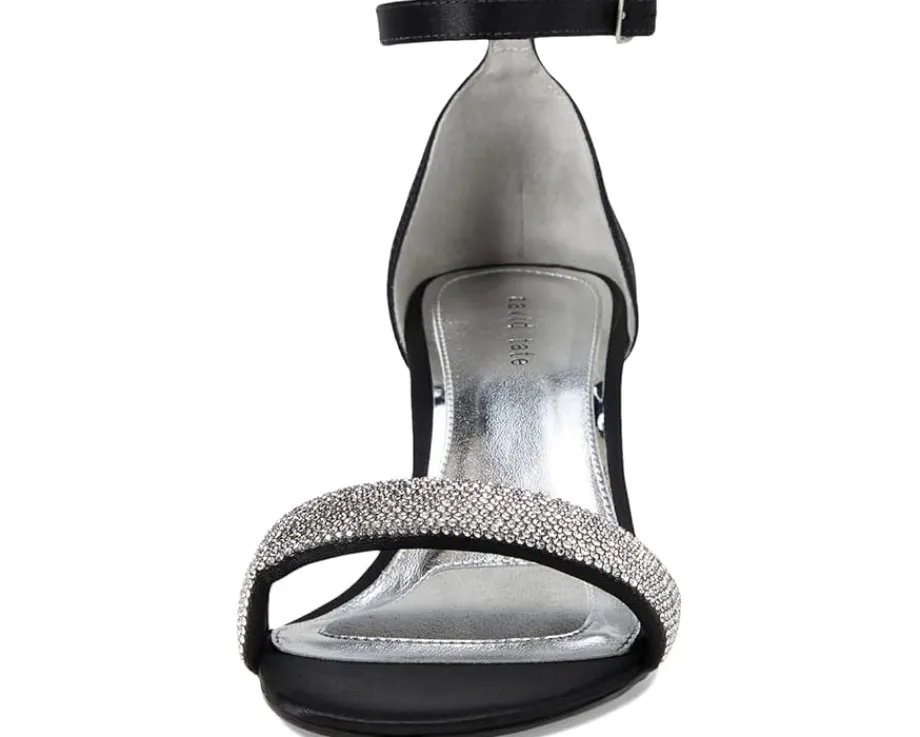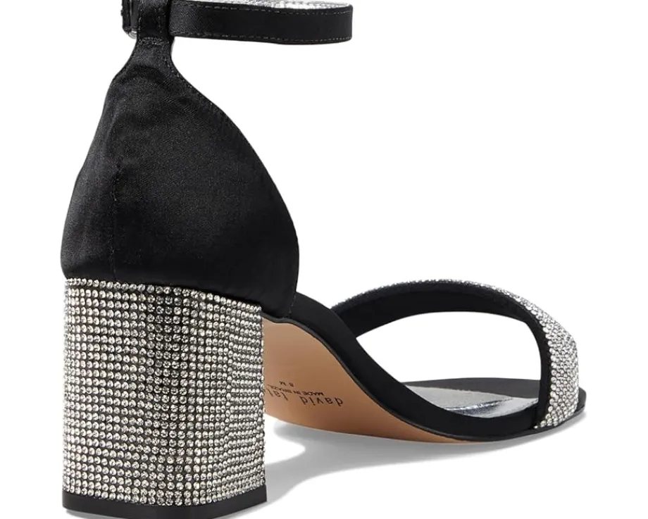 - A gorgeous and glamorous pick for your evening parties, the David Tate® Icon Heels showcase a premium quality satin upper perfectly teamed with shimmery rhinestone embellishments on the toe strap. Equipped with a feminine buckle strap closure at the ankle, the shoes look more stylish with the high quality sockliner made with satin, suede, and soft leather and surrounded by a metallic frame. The rhinestone-covered block heel lifts your look with some added charm.
