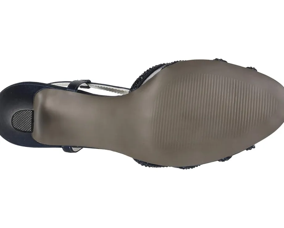 - Fabric and mesh upper with decorative rhinestones.