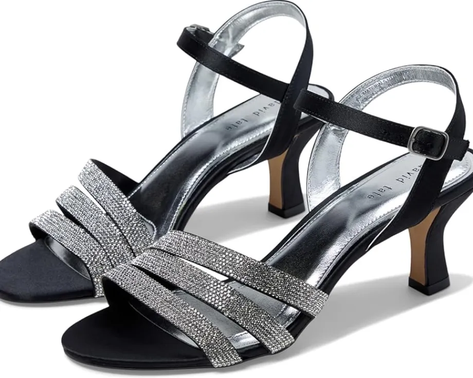 - No matter the occasion, complement your flawless look in the David Tate® Trio sandals. Featuring a round, open toe silhouette with beautiful rhinestone on the triple banded strapping and an adjustable buckle closure strap.