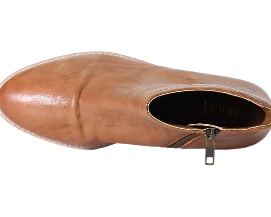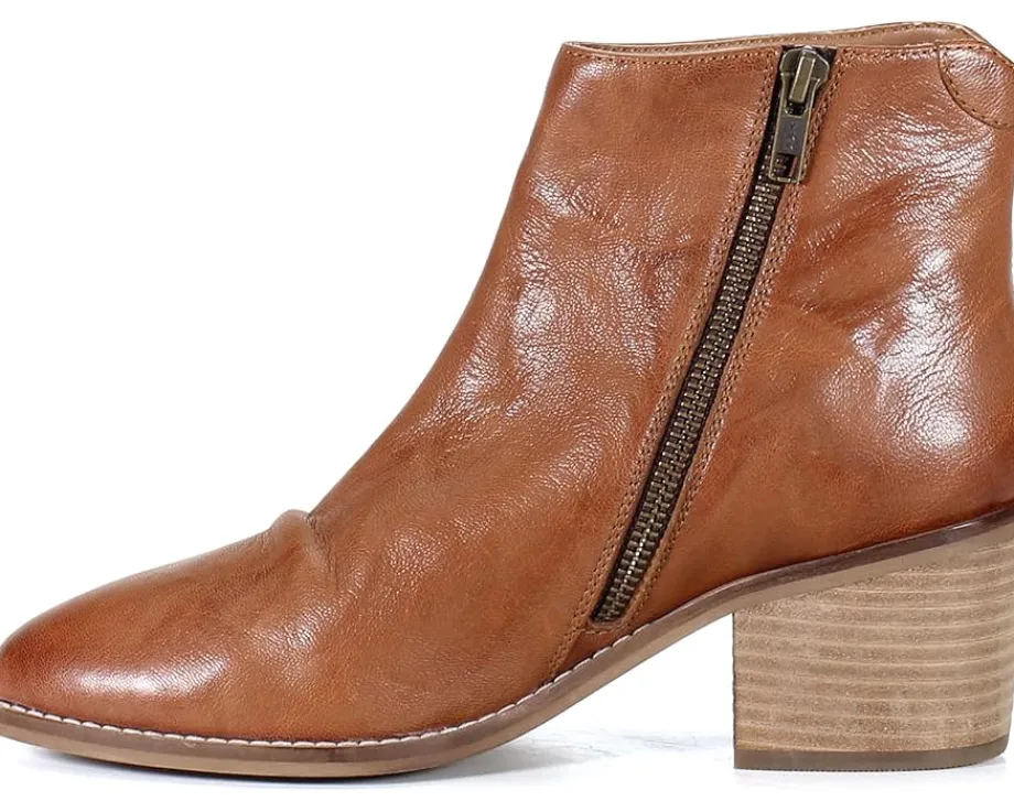 - Ankle-high boots featuring leather upper with a unique unrefined finish and a textured warm undertone.