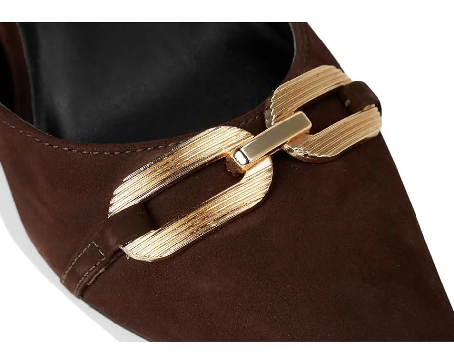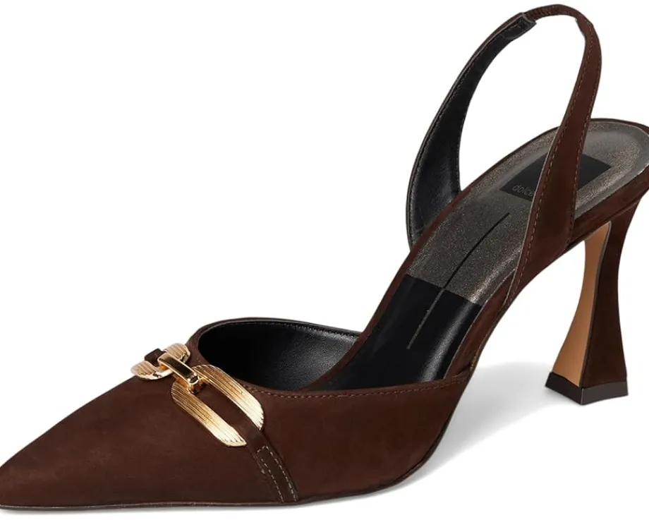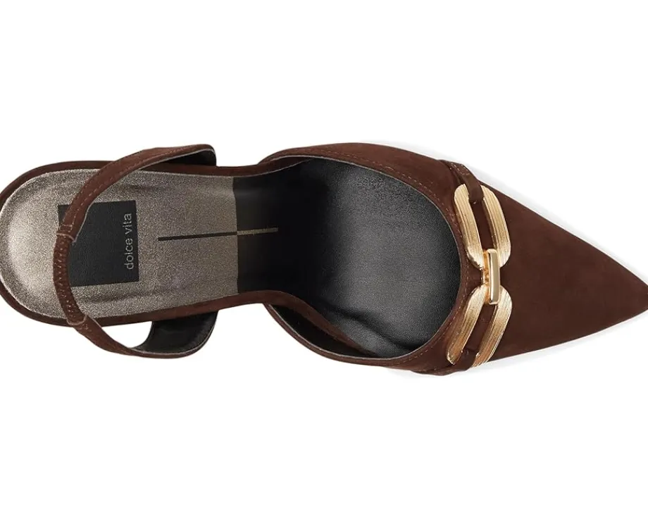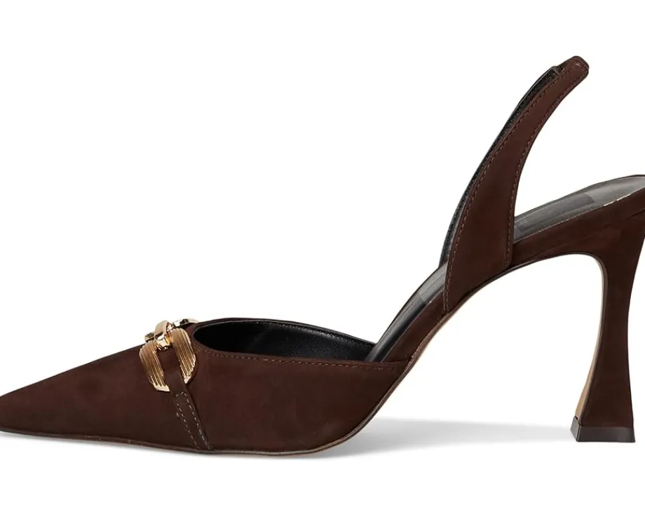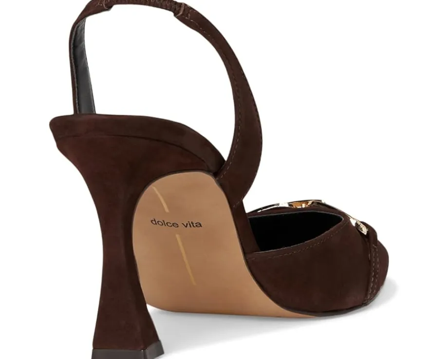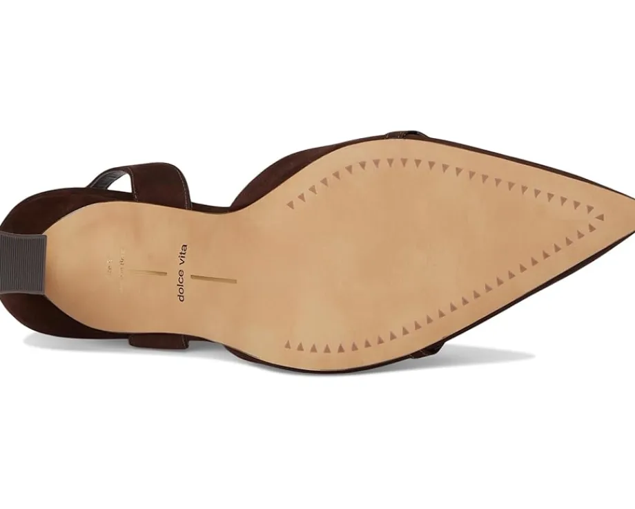 - The Dolce Vita® Malik features a sleek slingback silhouette and a pointed toe adorned with metal hardware for a bold finish. Crafted from suede upper, they offer a refined texture that complements the sculptural tapered block heel. The nylon lining and rubber outsole ensure durability and comfort.