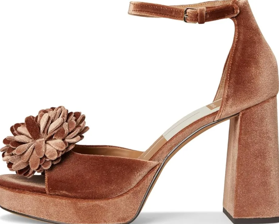 - The Dolce Vita® Perel Heeled sandals, a standout platform sandal that pairs whimsical detailing with evening poise. Draped in luxe velvet and accented by a soft pom-pom ornament, these heels balance statement style with wearable design.