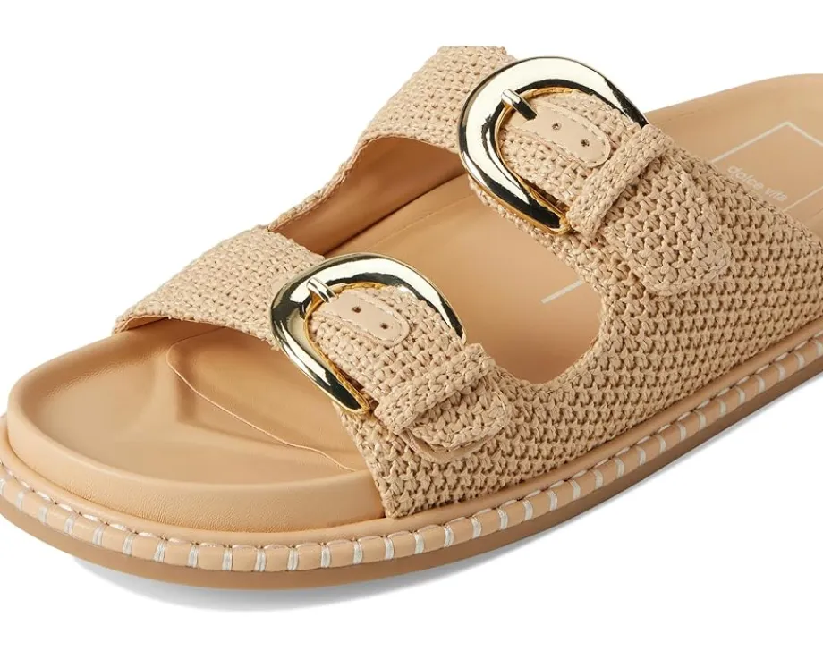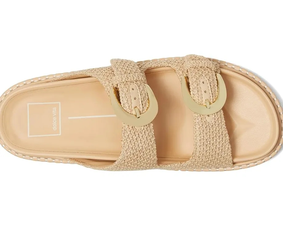 - The Dolce Vita® Shauny sandal combines comfort, style, and versatility in one perfect design. Ideal for any occasion, it offers a reliable and fashionable option for all-day wear. Crafted from hemp upper, leather lining, and insole, this pair of slip-on style sandals features double strap with buckle detailing, open round toe, and brand detailing on the footbed.
