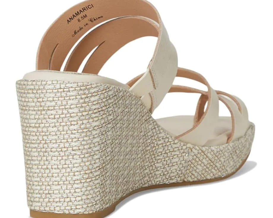 - The Donald Pliner® Anamari sandal gives you effortless height, featuring a brushed metallic Laser-cut, multi-strapped leather upper atop a tall wedge heel. These open round-toe sandals come with a leather lining. The leather insole with memory foam sock lining and stretch gores adds extra comfort to this slip-on style, while a toe ring and a rubber outsole keep it stable.