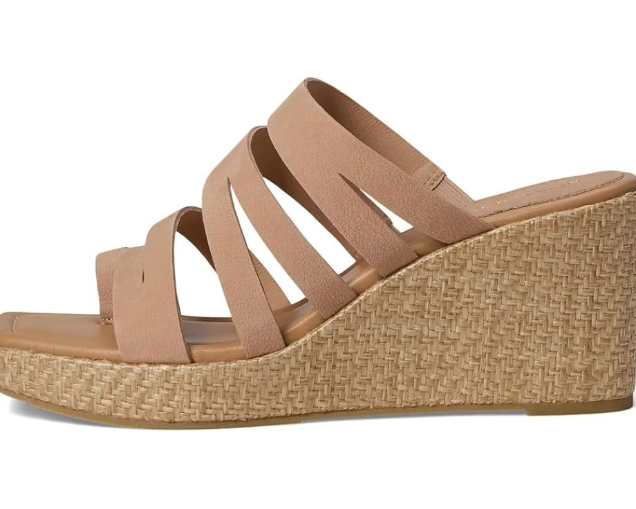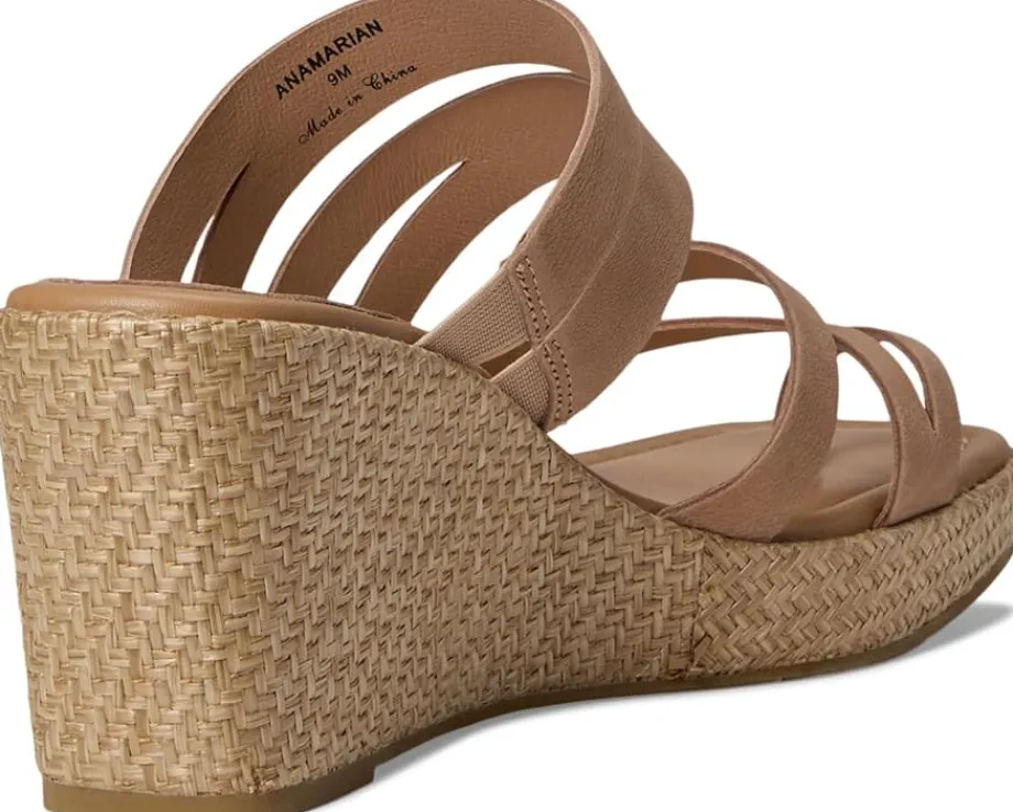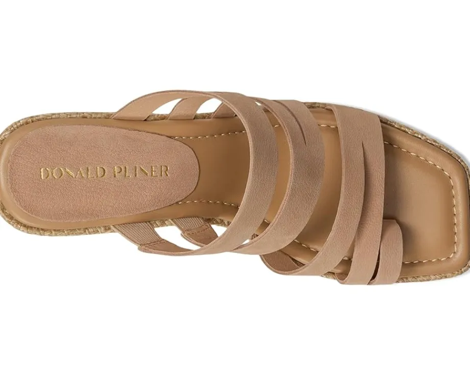 - The Donald Pliner® Anamari sandal gives you effortless height, featuring a brushed metallic Laser-cut, multi-strapped leather upper atop a tall wedge heel. These open round-toe sandals come with a leather lining. The leather insole with memory foam sock lining and stretch gores adds extra comfort to this slip-on style, while a toe ring and a rubber outsole keep it stable.