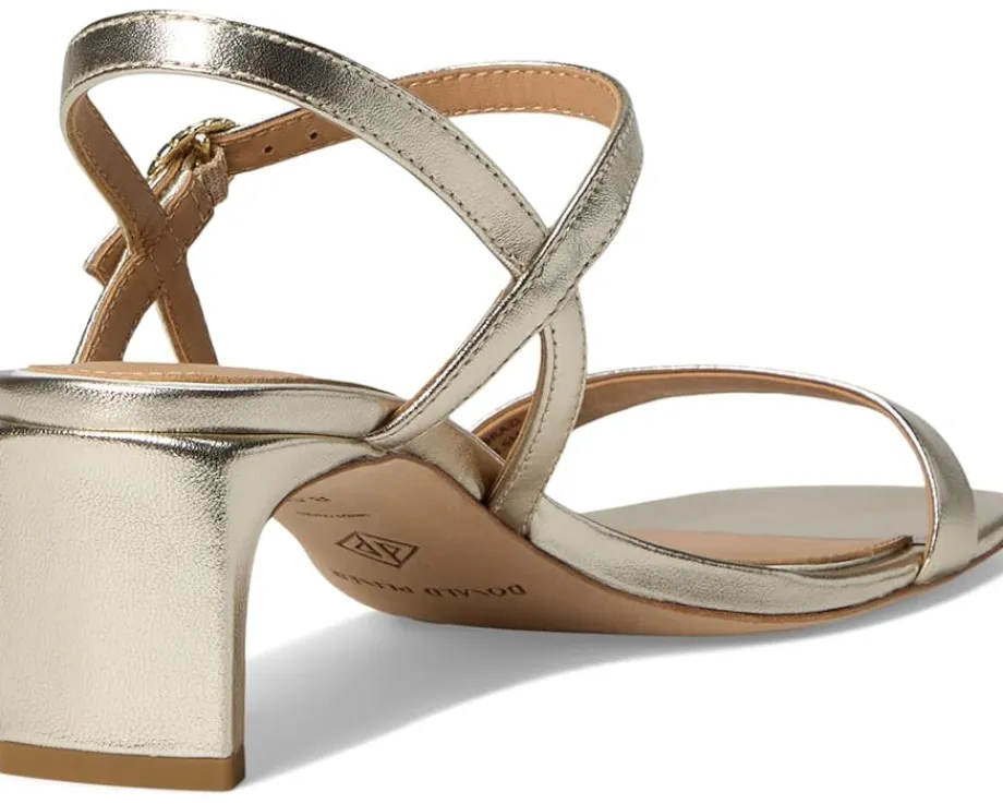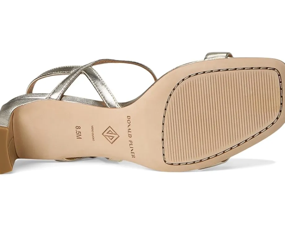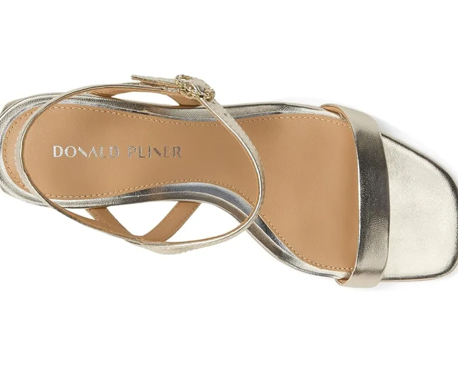- The Donald Pliner® Brazi is your go-to heel for elevated elegance, blending luxe materials and standout sparkle. Featuring a chic quarter strap adorned with an adjustable rhinestone buckle, it delivers a custom fit with a dose of dazzle. Choose from a radiant satin upper or a soft pearlized nappa finish-both paired with a matching covered heel for a polished monochrome look. The open toe keeps things breezy, while the sturdy block heel and supple leather lining, insole, and upper ensure comfort that doesn’t quit. A manmade outsole provides durability for all-day-and all-night-wear.