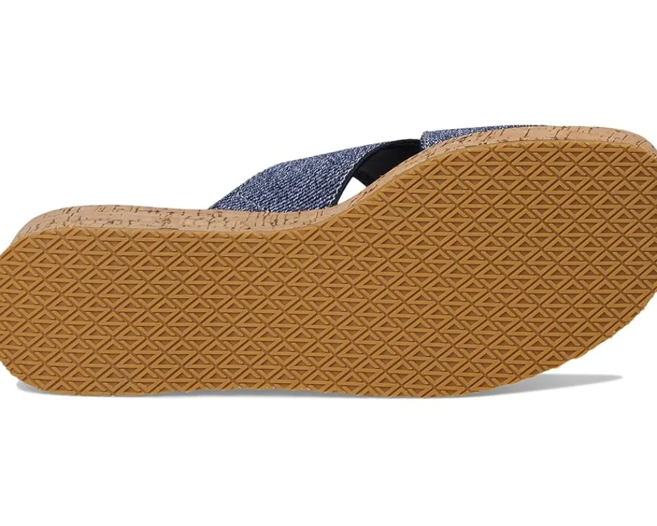 - Lightweight cork wedge heels.