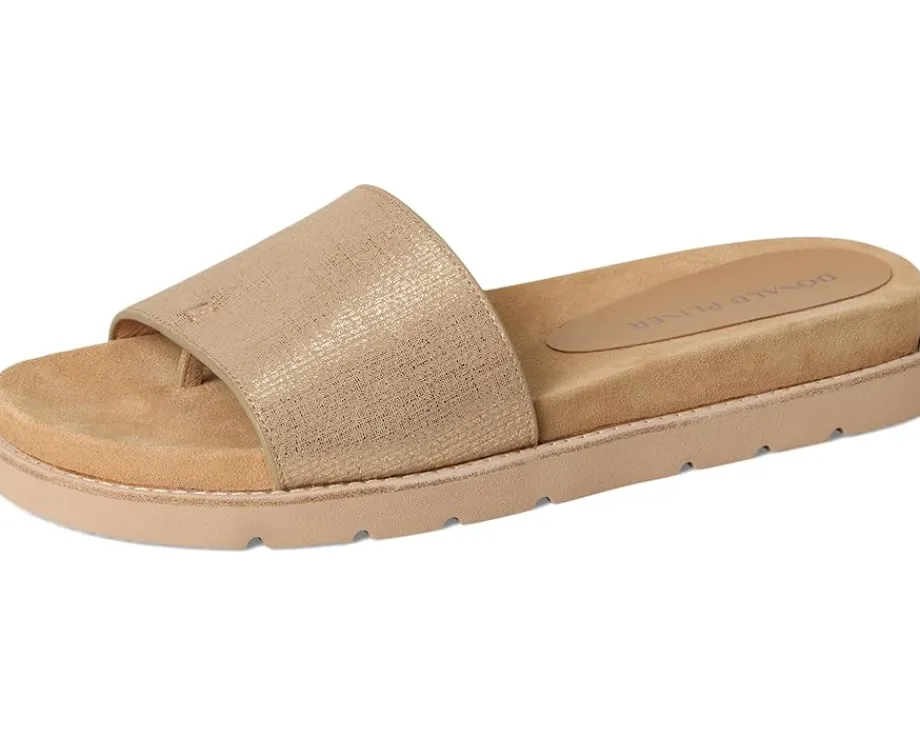 - Understated elegance meets everyday wearability in the Donald Pliner® Joella slide. This slip-on design features a single band leather upper paired with a leather-lined cushioned leather footbed, making it an effortless choice for versatile styling. The welt with constrast stitch detail, elastic walking gore, and lightweight EVA outsole enures a durable performance.