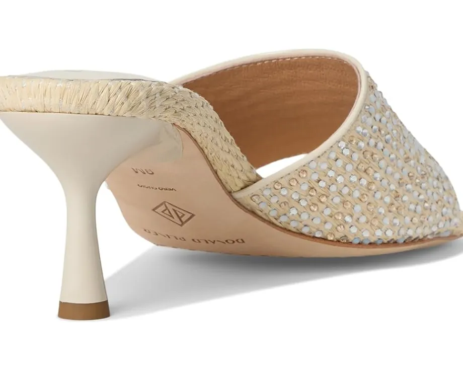 - Step into relaxed sophistication with the Donald Pliner® Rikki slide sandal, designed with a beaded woven raffia upper and a soft square toe. The sculpted mid-heel offers just the right amount of lift, while the memory foam padded insole ensures lasting comfort. Whether dressing up or down, this sandal delivers style with ease.