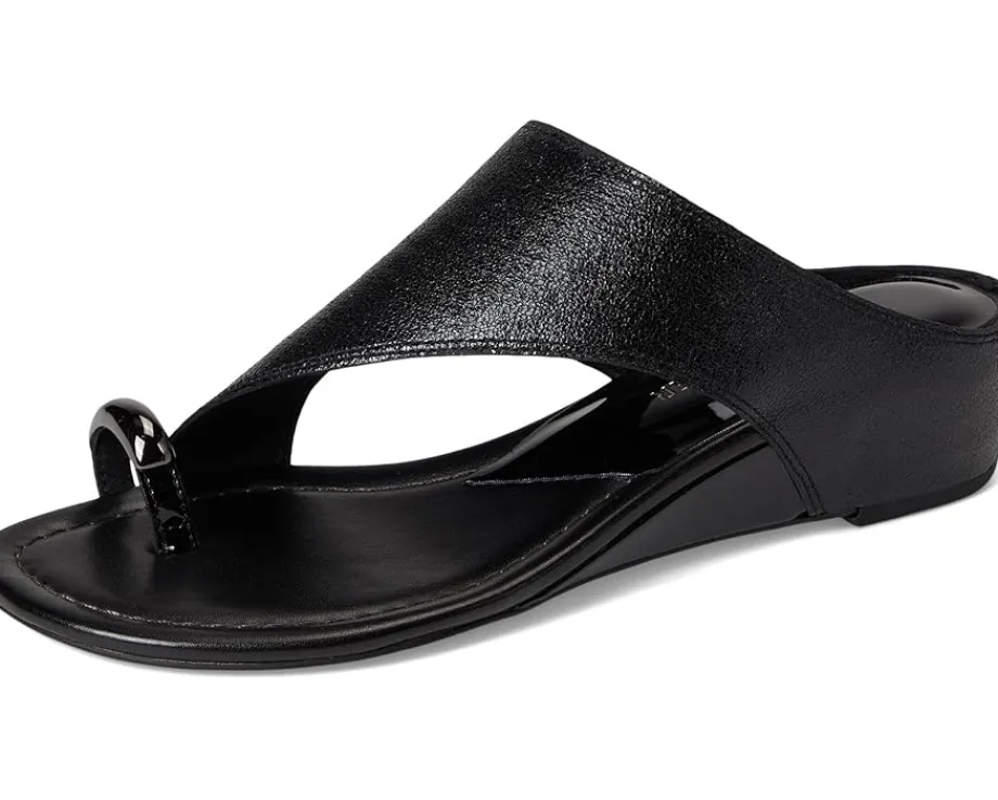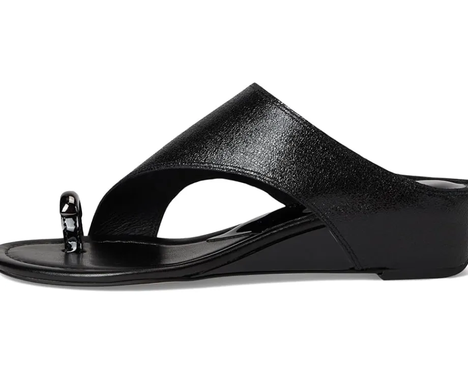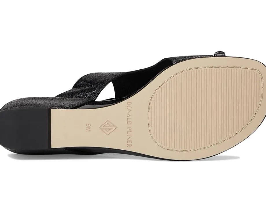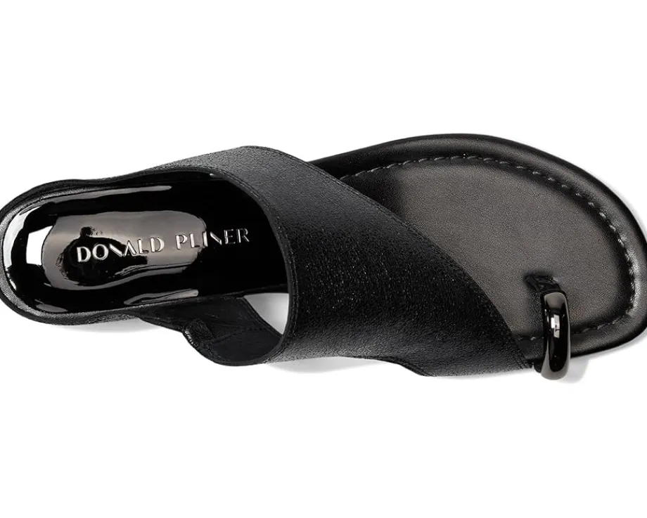 - The Donald Pliner® Vesna sandal blends elegance and ease with its toe ring design and metal ornament detail. A memory foam insole enhances comfort, while the demi wedge heel wrapped in matching textures adds a polished finish.