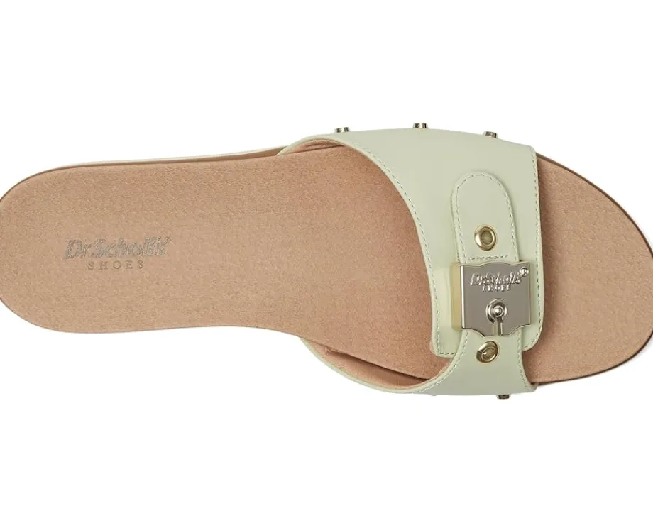 - The Dr. Scholl’s® Nice Iconic Slides with iconic details and legendary comfort are oh-so-nice. Their low-chemical faux leather upper features a slip-on fit with adjustable hook-and-loop closure for easy wear. These platform sandals are made of a foam insole that provides cushioned comfort. The fabric lining is partially made from recycled plastic bottles. Their lightweight and flexible construction moves with you. Slide into the season with original style in these slip-on sandals, packed with travel-ready comfort and ease.