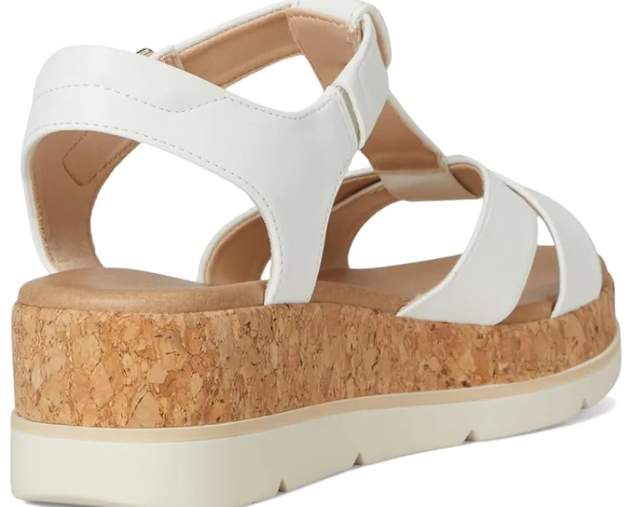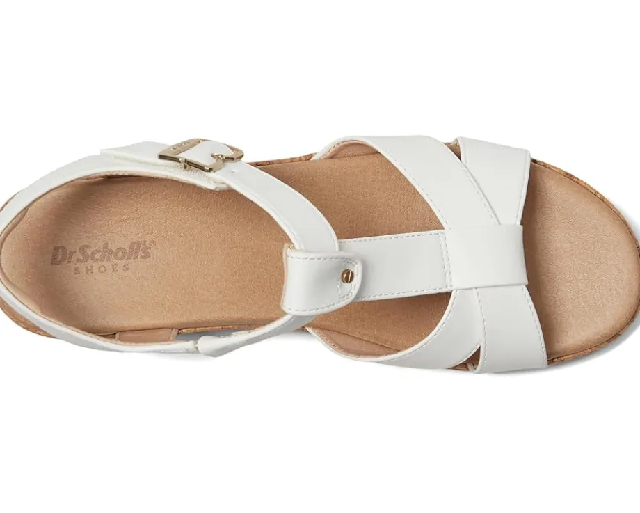 - The Dr. Scholl’s® Once Again is a comfy, casual womens sandals with an espadrille-inspired design. These open round-toe sandals are crafted with a low chemical faux leather upper with a hook-and-loop closure for easy on/off, faux leather lining. and foam insole. These feature an ankle strap & buckle closure along with a stunning wedge heel detail.