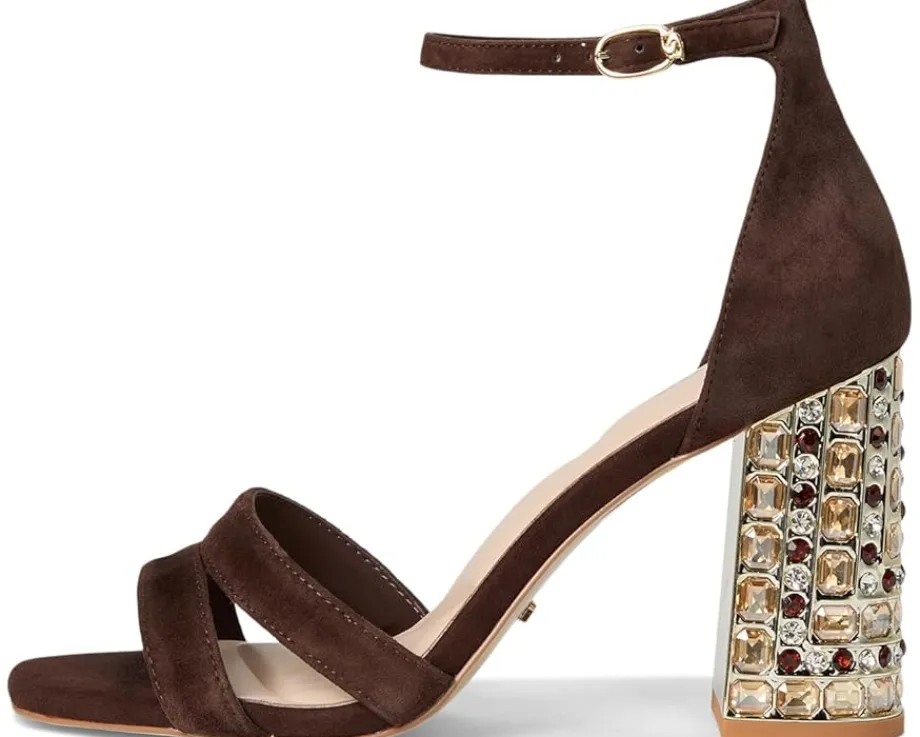 - Look and feel your best in Majestical a standout pair of block heels designed to cause a style stir. Featuring a jewel encrusted block heel for stability and style a sandal toe and classic buckle details their textured finish adds a modern touch to every ensemble.