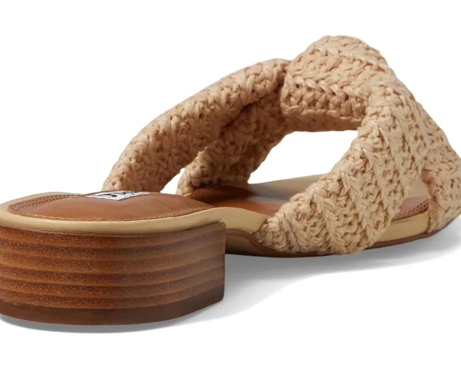 - Feel like a star wearing the Dune London™ Laize. Crafted from fabric upper, lining and footbed, this pair of sandals features open square toe, crochet strap knot detailing on the vamp, slip-on closure and block heel.