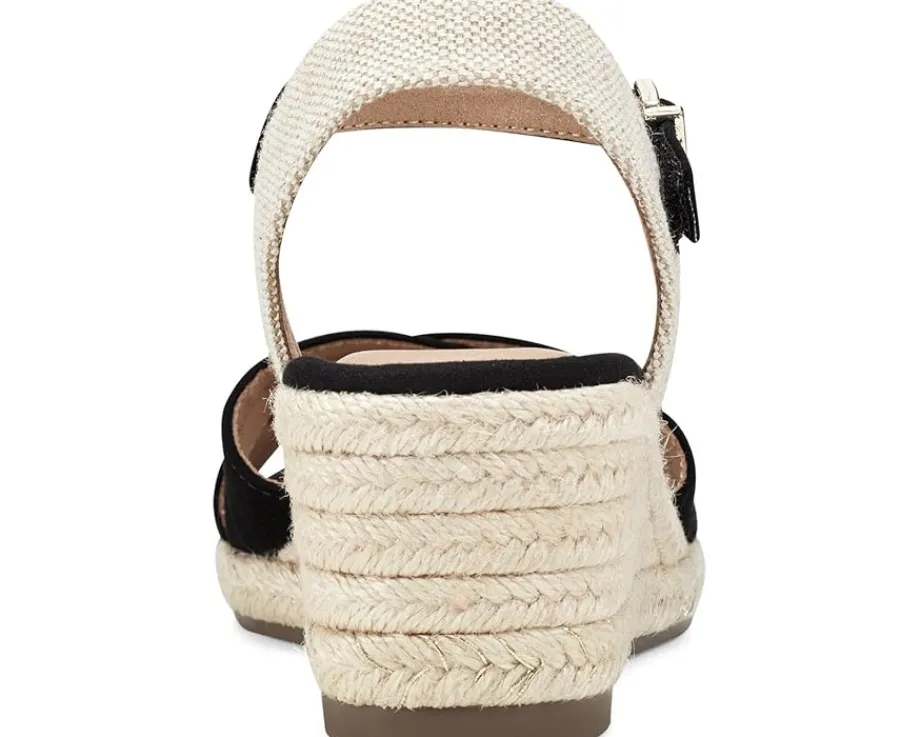 - Add both style and functionality to your look by complementing it with the Easy Spirit® Shandra Sandals crafted with a suede & textile upper, textile lining, and cushioned foam footbed. The sandals feature an open round toe, cross-strap detailing, wedge heel for better arch support and an ankle strap & adjustable buckle closure for a secured fit.
