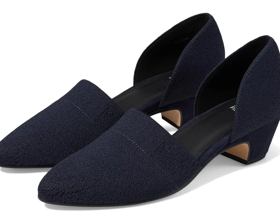 - The Eileen Fisher® Marra is a slip-on two piece pump with a soft almond toe and recycled poly knit upper offering a nice stretch on the top for comfort. With an easy pull-on style, the mid-top footwear has block heel and backstrap for added support.