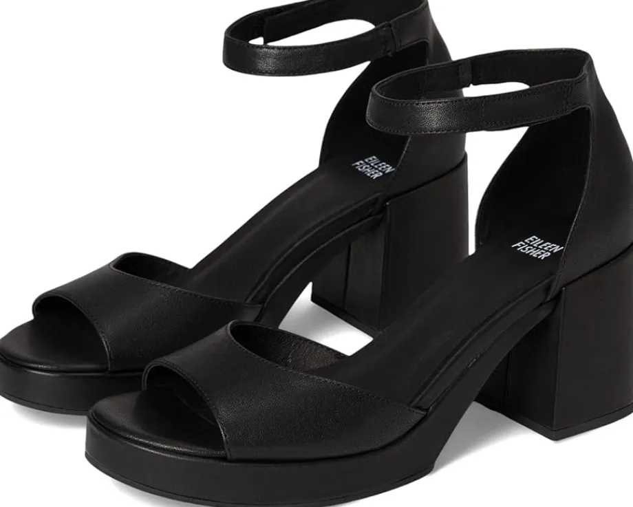 - The Eileen Fisher® Nava Sandals are platform sandals that are wrapped in leather, the upper straps are made of leather, and the ankle strap has a hook-and-loop closure for a secure fit. These heeled sandals are made of a leather insole, padded footbed, and leather lining, making them comfortable to wear for long hours.