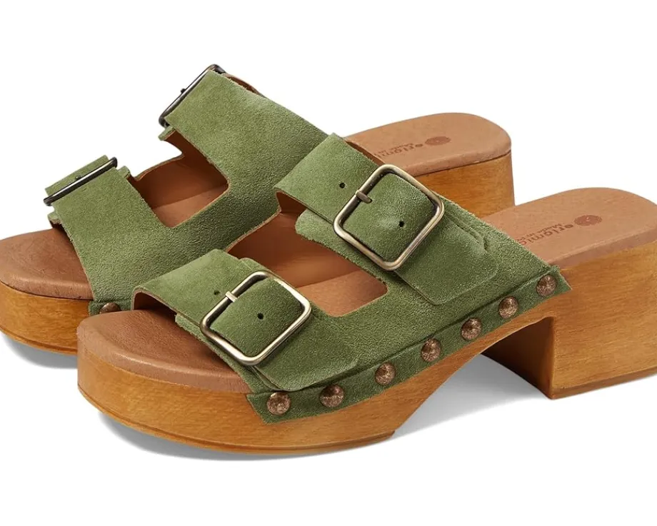 - Emphasize your comfy yet fashionable take on timeless trends wearing the Eric Michael® Austin Sandals. The slip-on footwear features functional buckles on the leather upper straps with cushioned footbed and block heels.