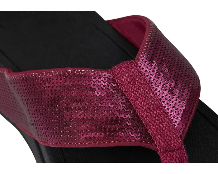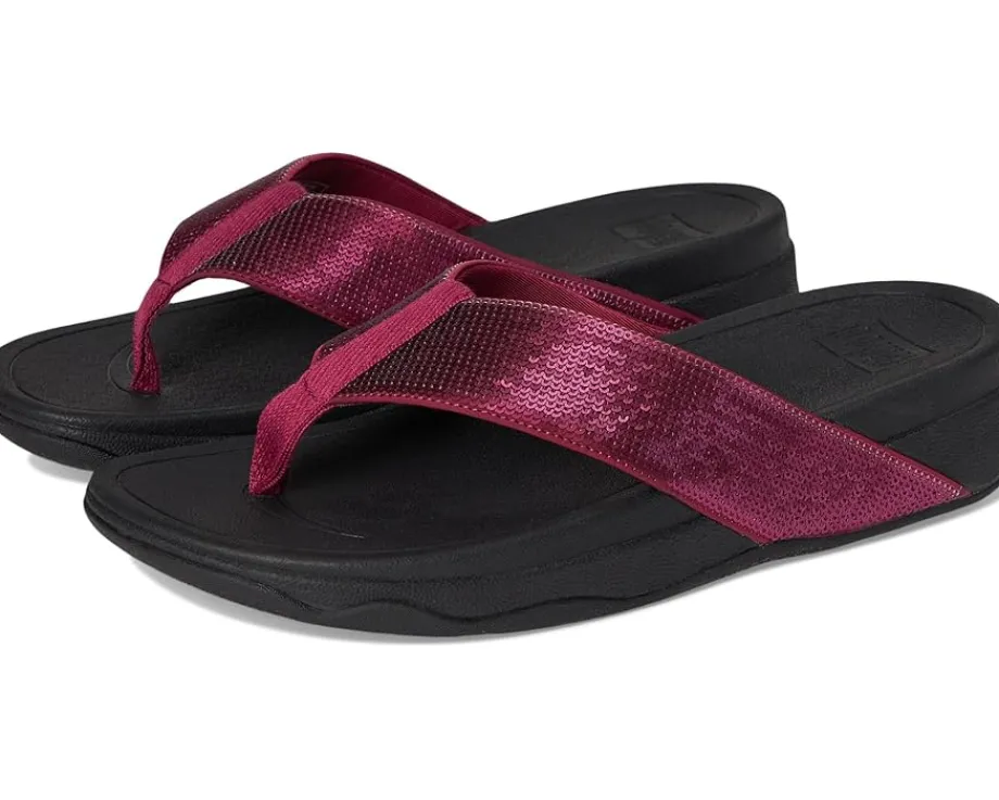 - Redefine your everyday footwear wearing the FitFlop™ Surfa Sequin Toe-post Sandals. Designed with recycled webbing drenched in fine, close-set sequins, these sandals bring a touch of luxe to every step-whether you’re beach-bound, festival-ready, or strolling from sunrise to soiree. The soft polyester upper and lining hug your feet comfortably, while the fabric toe-post keeps it breezy. Slip on with ease and let the wedge heel and signature Microwobbleboard™ midsoles cushion your every move.