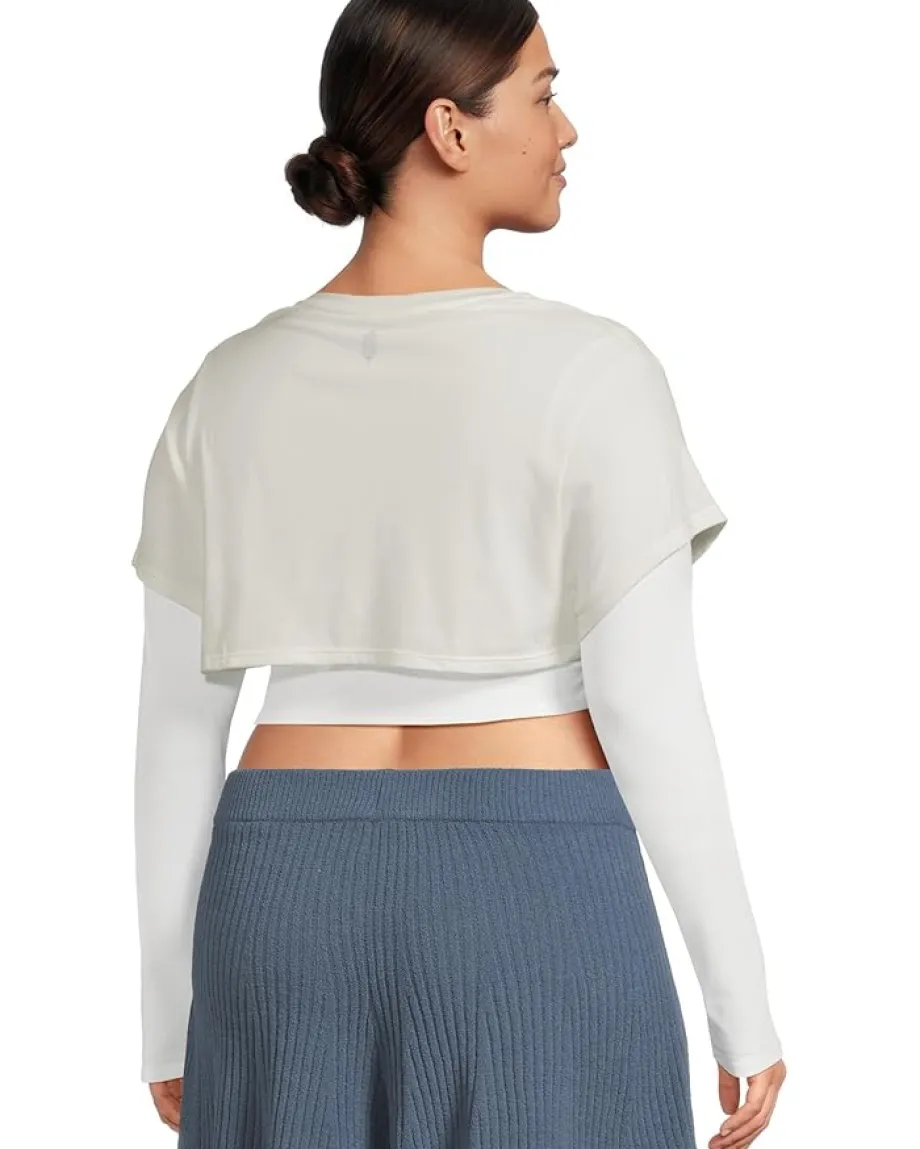 - Keep up the fashion game high for workout session wearing the casual and comfy FP Movement Double Double Layer Top. The pull-on style top features a crew neck, a double layer design with a short sleeve cropped tee on top of a long sleeve tee with thumbholes. The cropped silhouette looks chic.