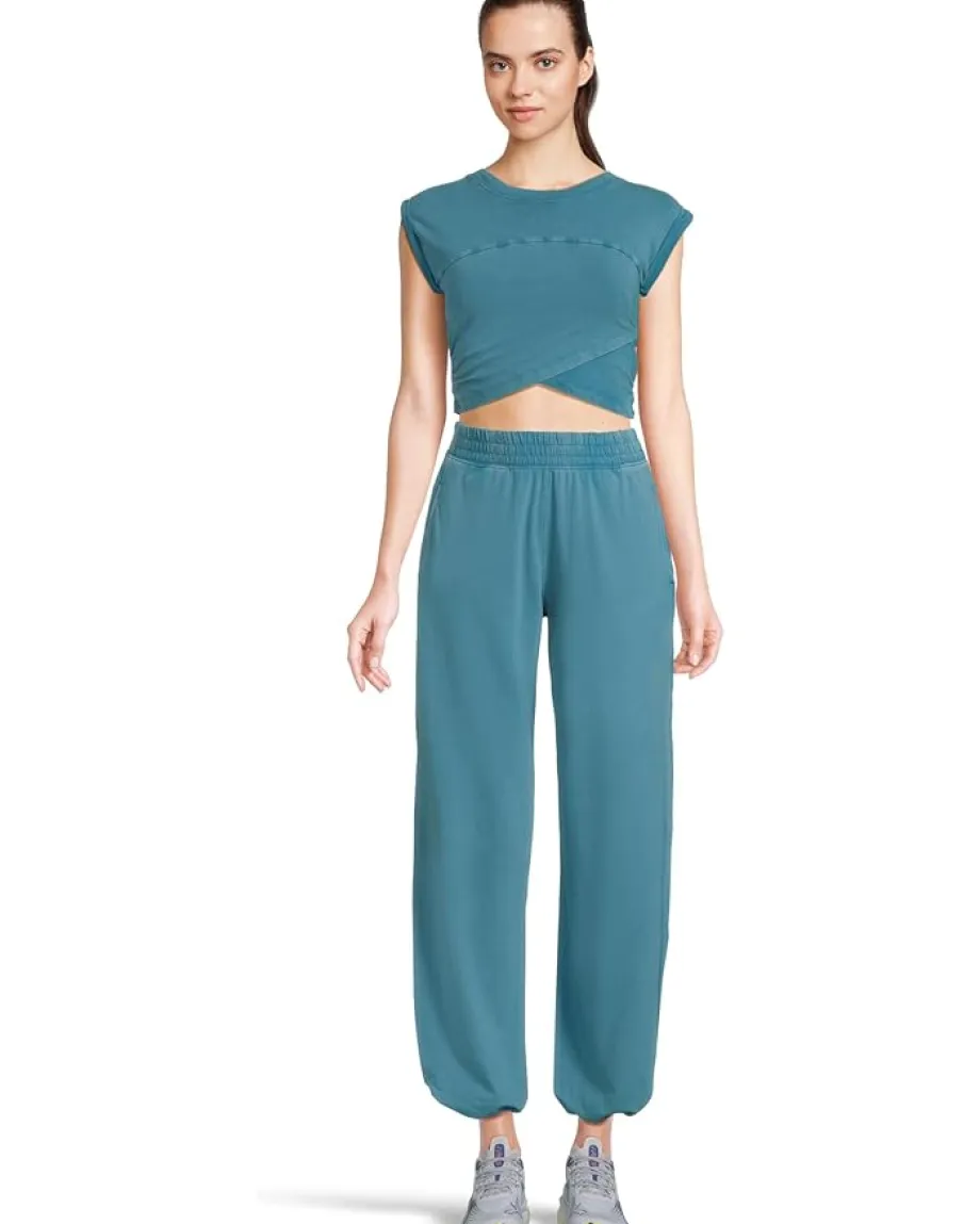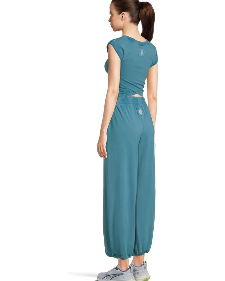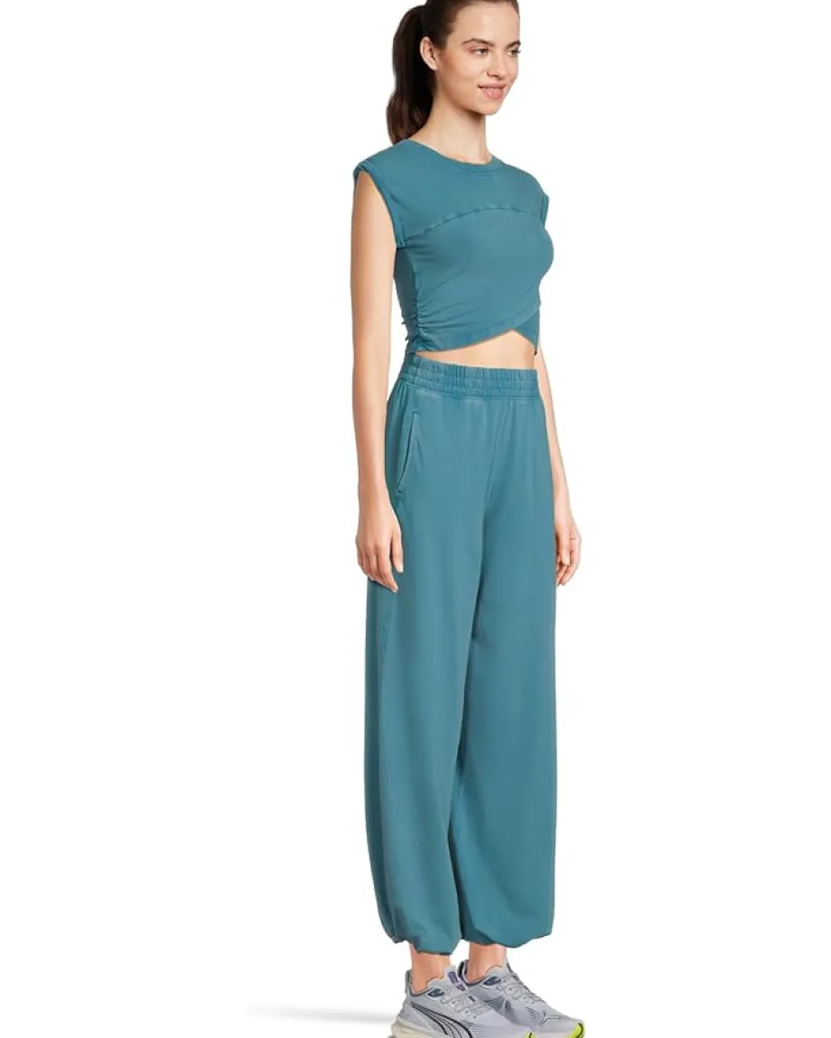 - Perfect for workouts and daily outing, the FP Movementâ„¢ Hot Shot Crossover Set is effortlessly comfy. Featuring a super soft fabrication and perfectly lived-in look. This relaxed fit set has ankle length pant, cropped muscle tee top with seaming detail; ankle length pant with high-rise waist, wide leg, elasticated waistband and cuffs. It comes with crossover detail on top, ribbed collar, and side seam pockets.