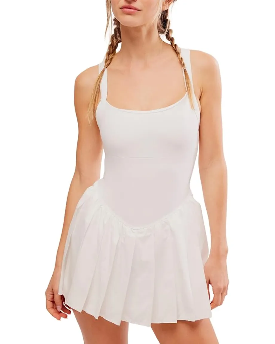 - The FP Movementâ„¢ Swing Of Things Dress is a fun addition to your wardrobe. The breathable dress comes in a mini-length silhouette and lightweight fabrication with oversized patch pockets and built-in shorts. It features a scoop neck, a sleeveless design, and a pleated skirt.