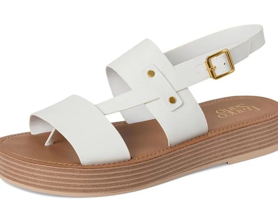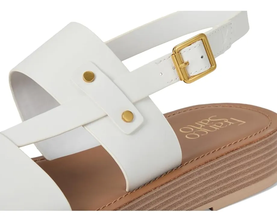- An eye-catching silhouette and haute hardware detailing combine to create the Franco Sarto® Genova sandals. These bold platform sandals are made of a leather insole and polyurethane lining. The leather upper features an ankle strap with adjustable buckle closure. Easy to slip on and off, these leather sandals are perfect for your outdoor rides and casual outings.