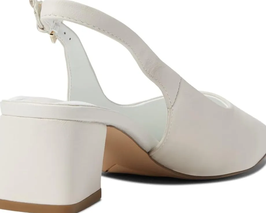 - Slingback strap with adjustable buckle closure.
