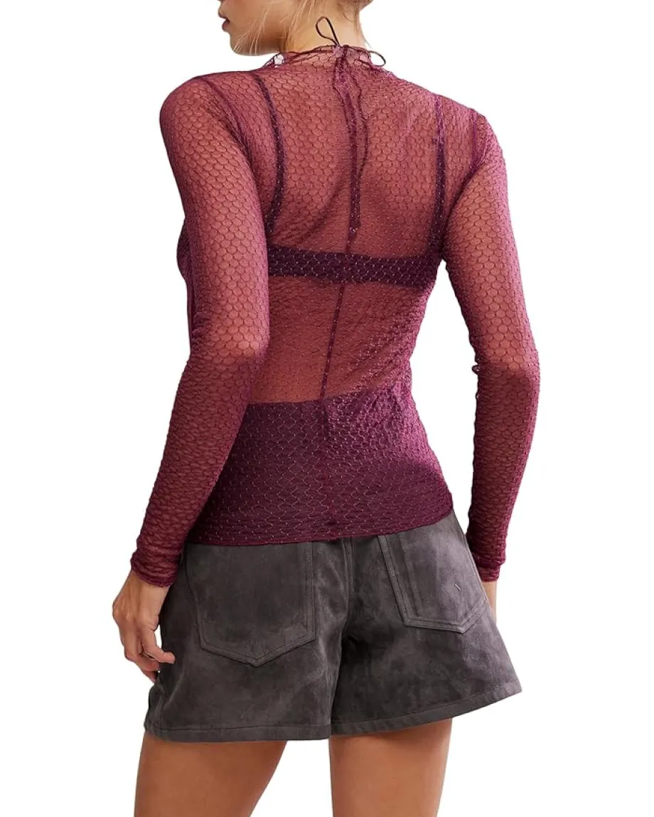 - Crafted in a sheer mesh fabrication and a semi-fitted silhouette, the Free People™ Minding My Business Top has got the perfect textured style with a ruffled mock neckline for a femme touch. The full-length top features patterned finish and extra-long fitted sleeves. Wear solo with your fav bralette or pair under your go-to tees and tanks.
