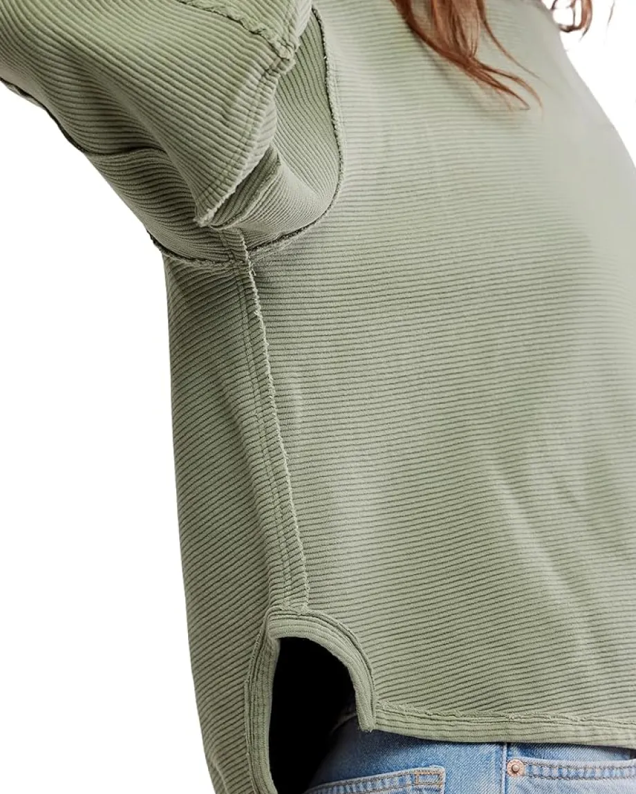 - Get ready to elevate your casual look choosing the Free People™ Total Eclipse Tee. Made from a soft ribbed knit fabrication, this tee features an oversized fit that is both comfortable and chic. The slight scoop neckline and dropped Dolman sleeves add an extra touch of style, while the cuffed hem and raw trim throughout give this tee a unique edge. Perfect for lounging at home or running errands in style, this tee is a must-have for your wardrobe.