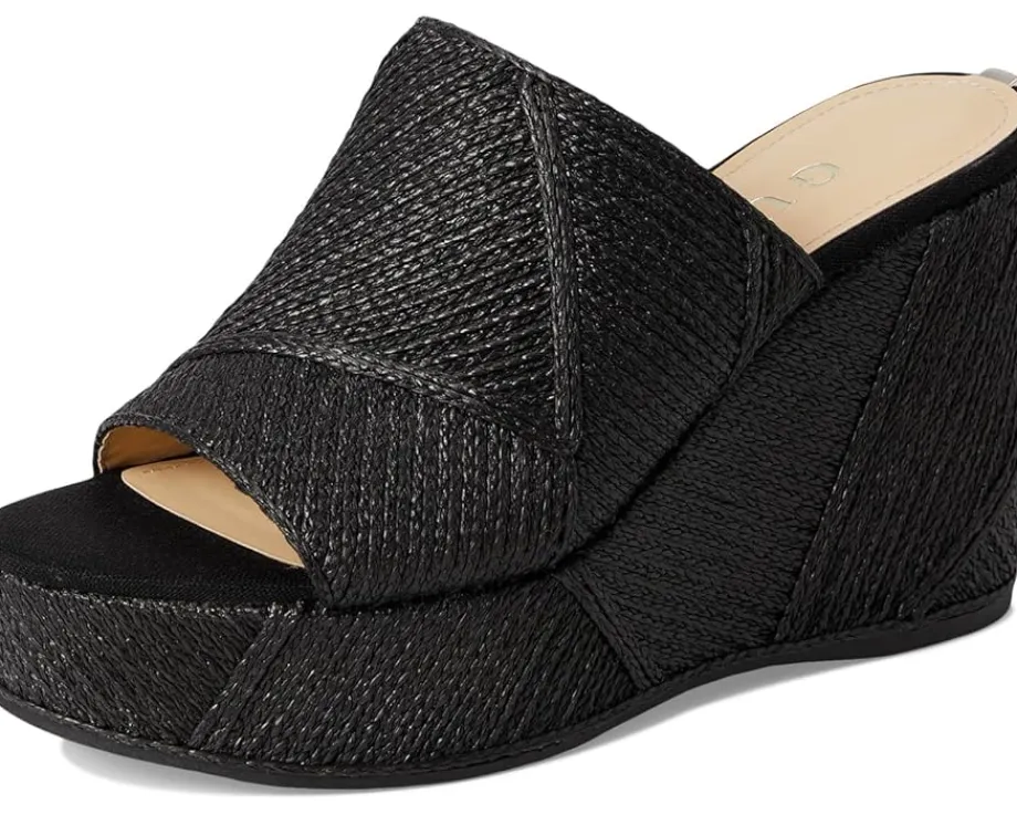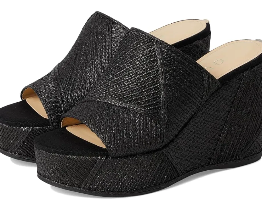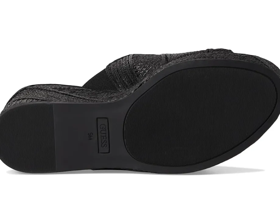 - Take your style statement to new heights wearing the GUESS® Evenz Sandals with appealing woven detailing throughout on a wedge heel. The slip-on style sandals feature a polyurethane upper, a polyurethane lining, and a comfortable insole.