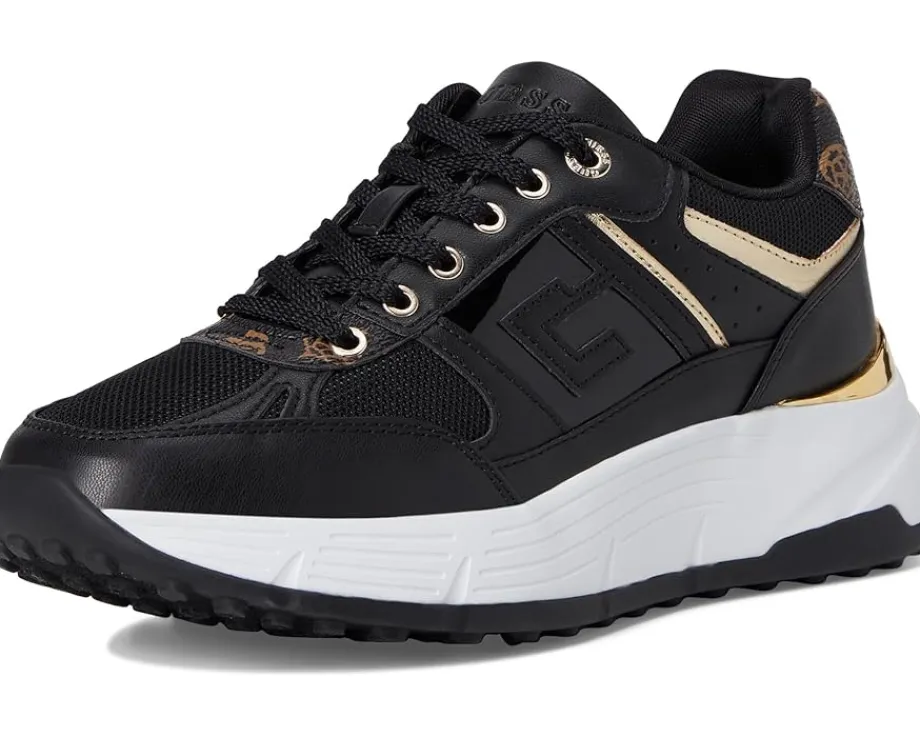 - The Guess® Fonzi takes you to a new level of style and comfort. This platform, lace-up sneaker features an oversized G logo and a gold rand on the heel that keeps you on trend while staying comfortable. Crafted from rubber upper, synthetic lining, and synthetic sock, it comes with round toe, and low top silhouette.