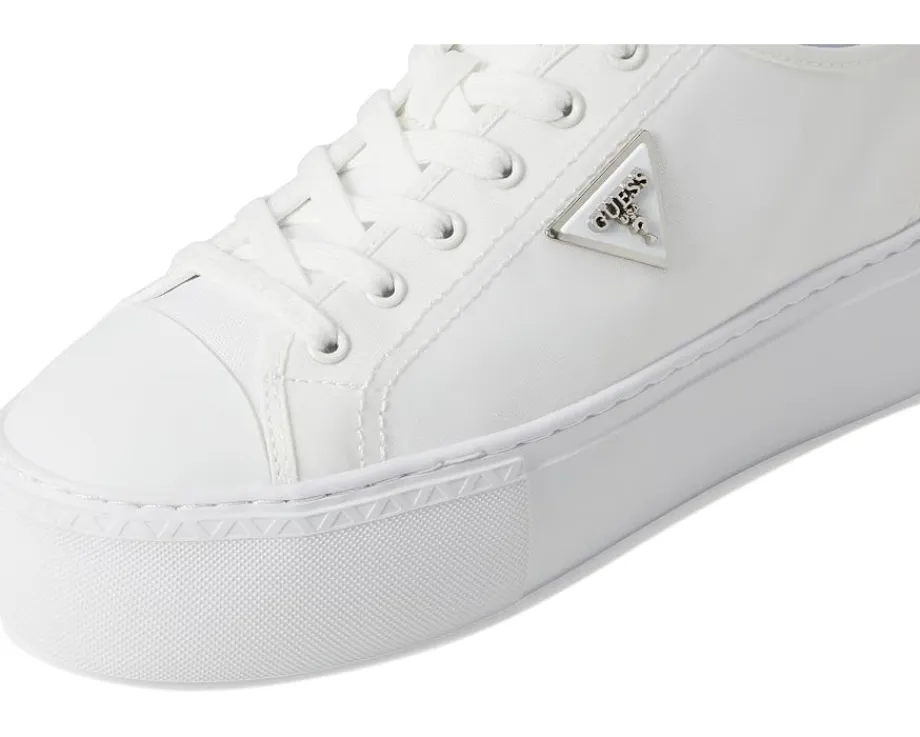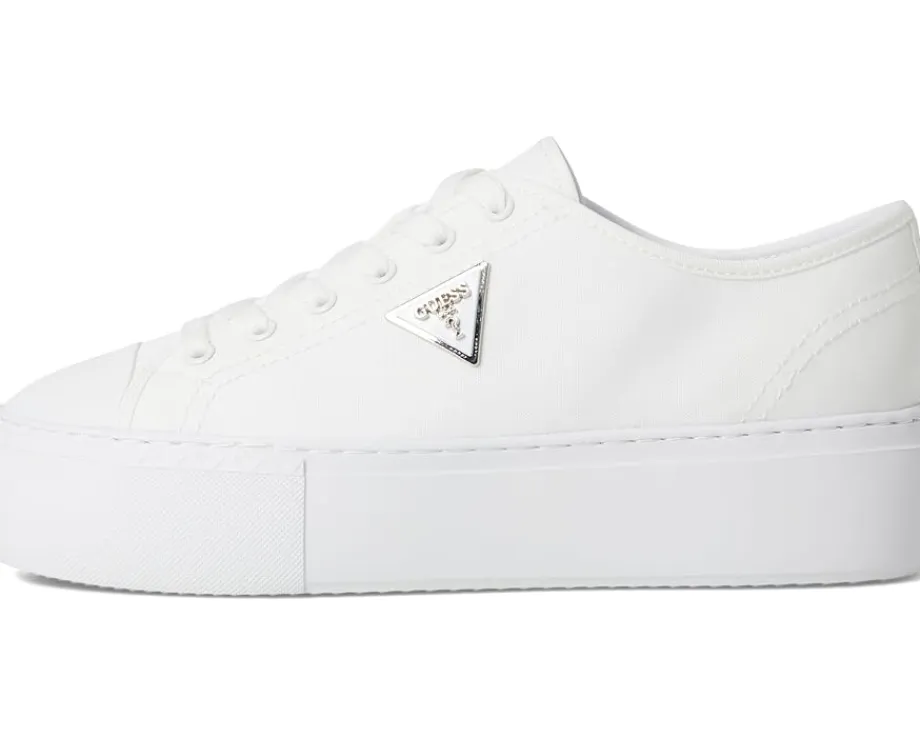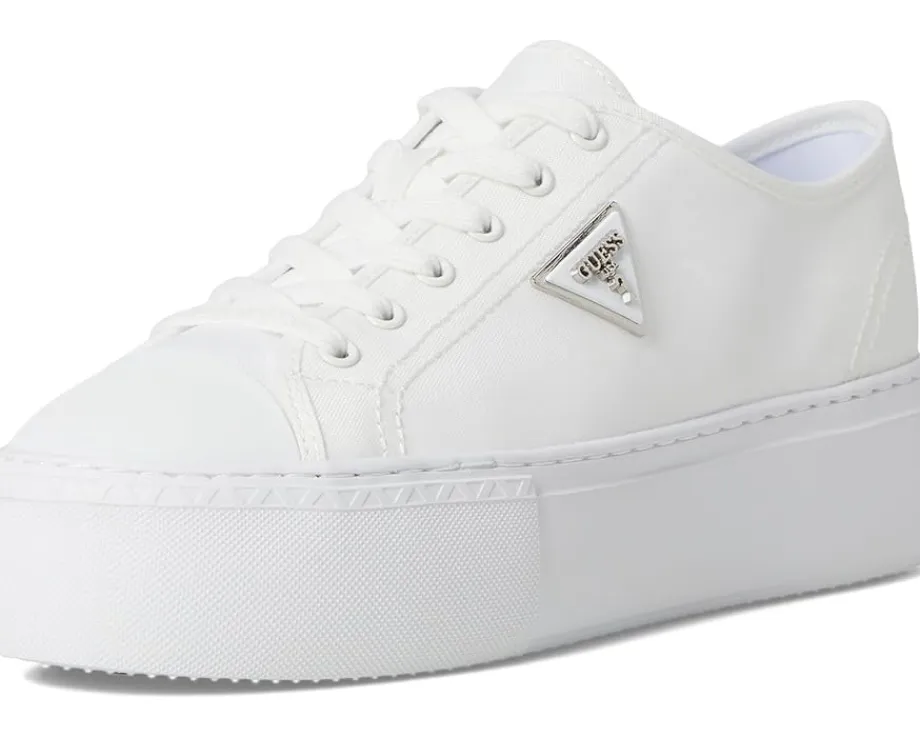 - The GUESS® Joezi shoes give a casual dress-up-or-down appeal. These platform sneakers are accented with a signature Guess triangle logo that is ready to wear with jeans or a dress. They are designed with a cushioned insole, synthetic sock lining, and synthetic rubber lining. The rubber upper features a lace-up closure for a secure fit. These lace-up sneakers are perfect to pair with different outfits and styles.