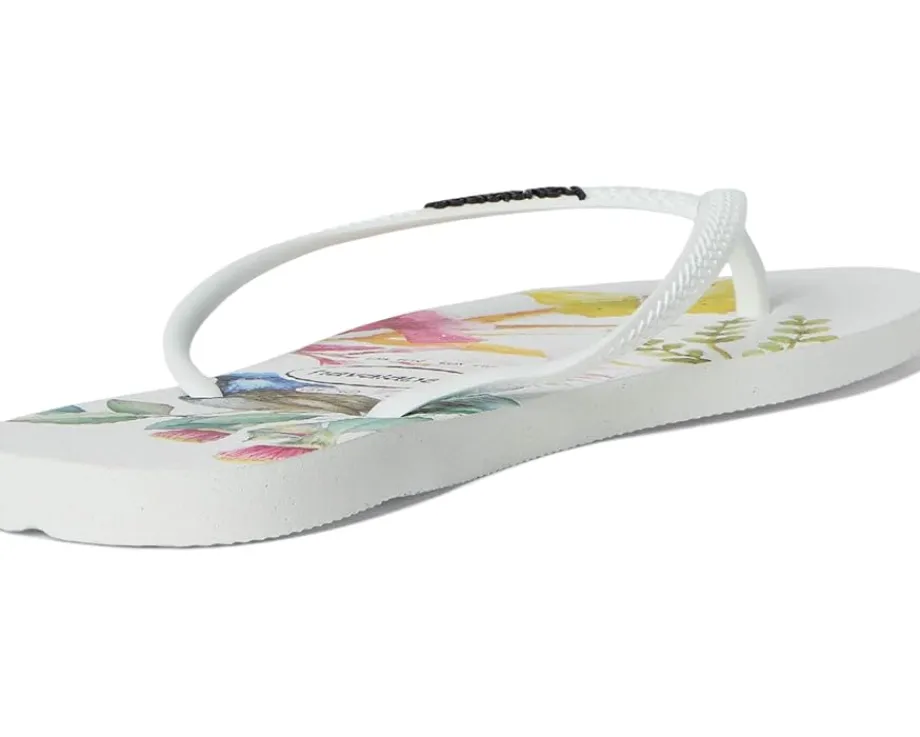 - The Havaianas® Slim Flora Sandals carry the perfect combination of nature prints and beautiful colors. This pair is a synonym of style and sophistication. They are crafted with a rubber upper, rubber insole, and natural rubber lining. These printed flip-flops are easy to fall in love with and to style up your best looks. Just go for it.