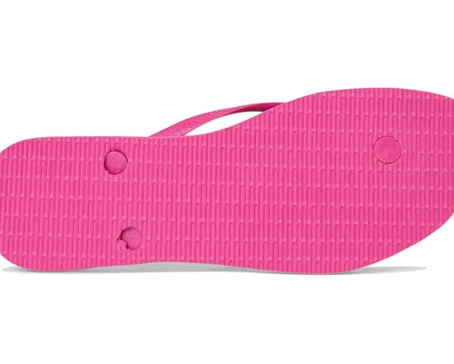 - The Havaianas® Slim Square Logo Pop Up Sandals are designed in a thong style with an easy slip-on design. This open squared-toe sandal features a rubber upper with the iconic Havaianas® logo in a contrasting color and prominently displayed on the strap. It also comes with a rubber lining and insole.