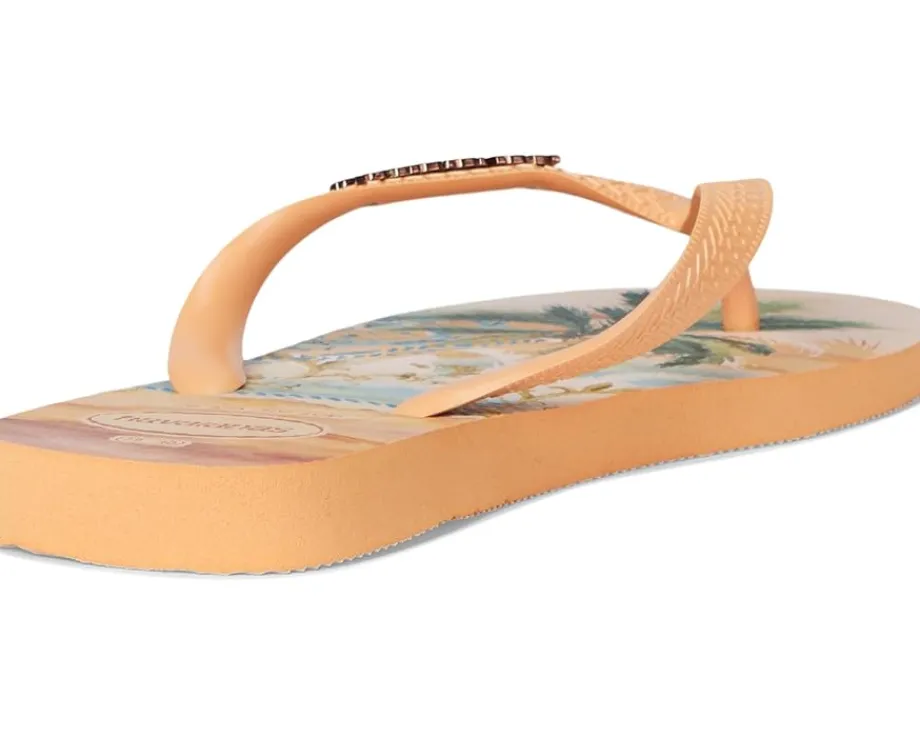 - The Havaianas® Top Tropicalia Sandals embody the essence of summer, ideal for those who love the sun and nature. With the classic Top design, this sandal features a sole printed with patterns inspired by the Brazilian tropical coast. The iconic Havaianas logo, which appears in a metallic version on the straps, is a highlight.