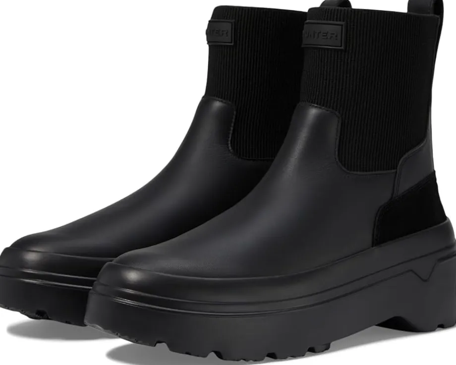 - Discover the joy of urban street escapes wearing Hunter® Explorer Chelsea Flatform Boots. The pull-on footwear features rubber upper construction with recycled polyester lining, footbed, and flatform midsole.