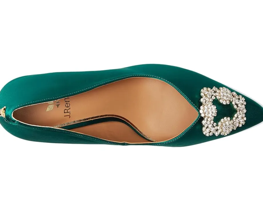 - Revamp your look by complementing outfits with these bold and beautiful J. Renee® Ezara Pumps. This year-round women’s fabric pointy toe pump has a memory foam & latex insole, synthetic lining, and a satin fabric upper. The embellished brooch detail on the vamp and stiletto heel amp up the style game.
